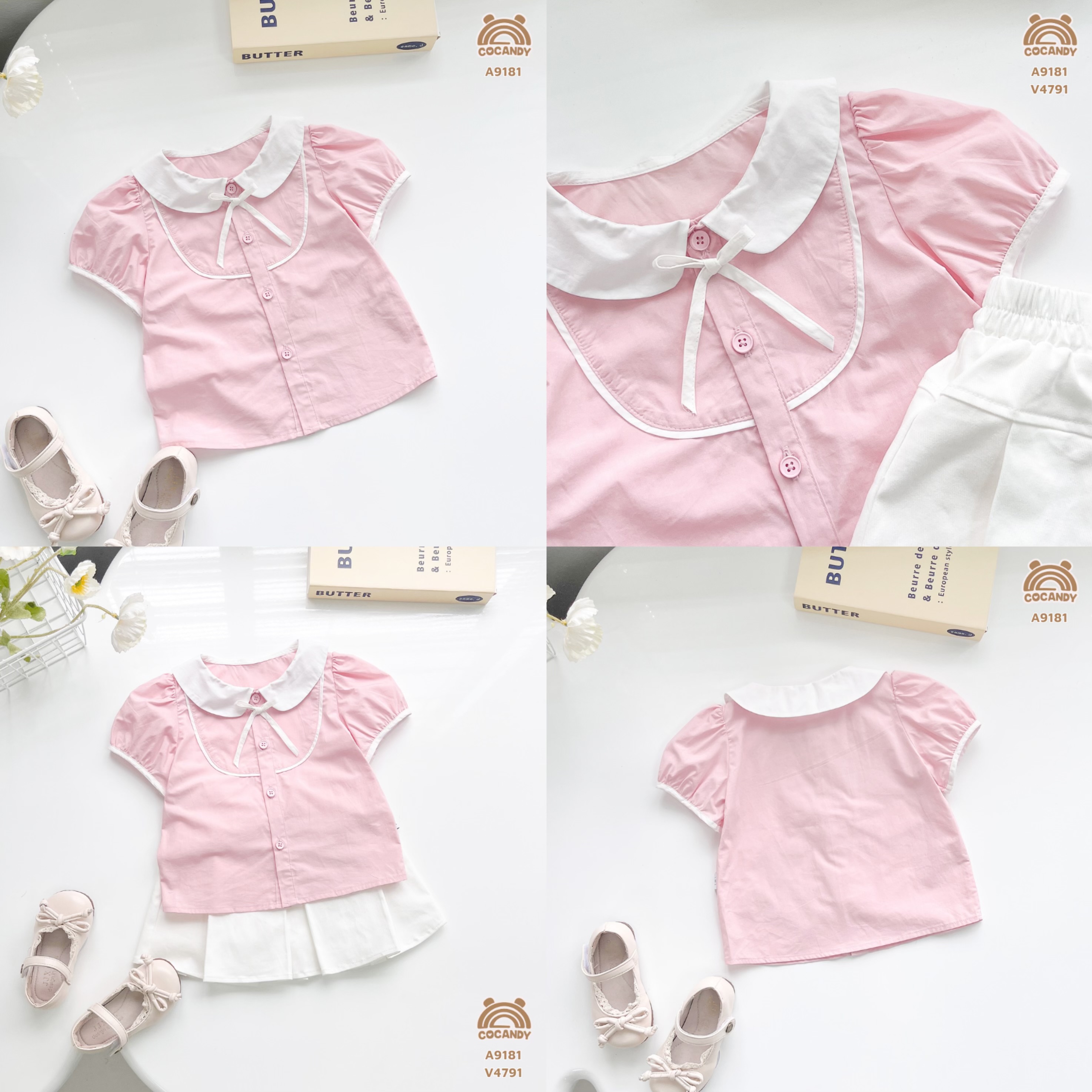 LƯU Ý: Sản phẩm chỉ gồm Áo cộc HỒNG sơ mi viền trắng phối nơ A9181 chưa bao gồm các sản phẩm khác