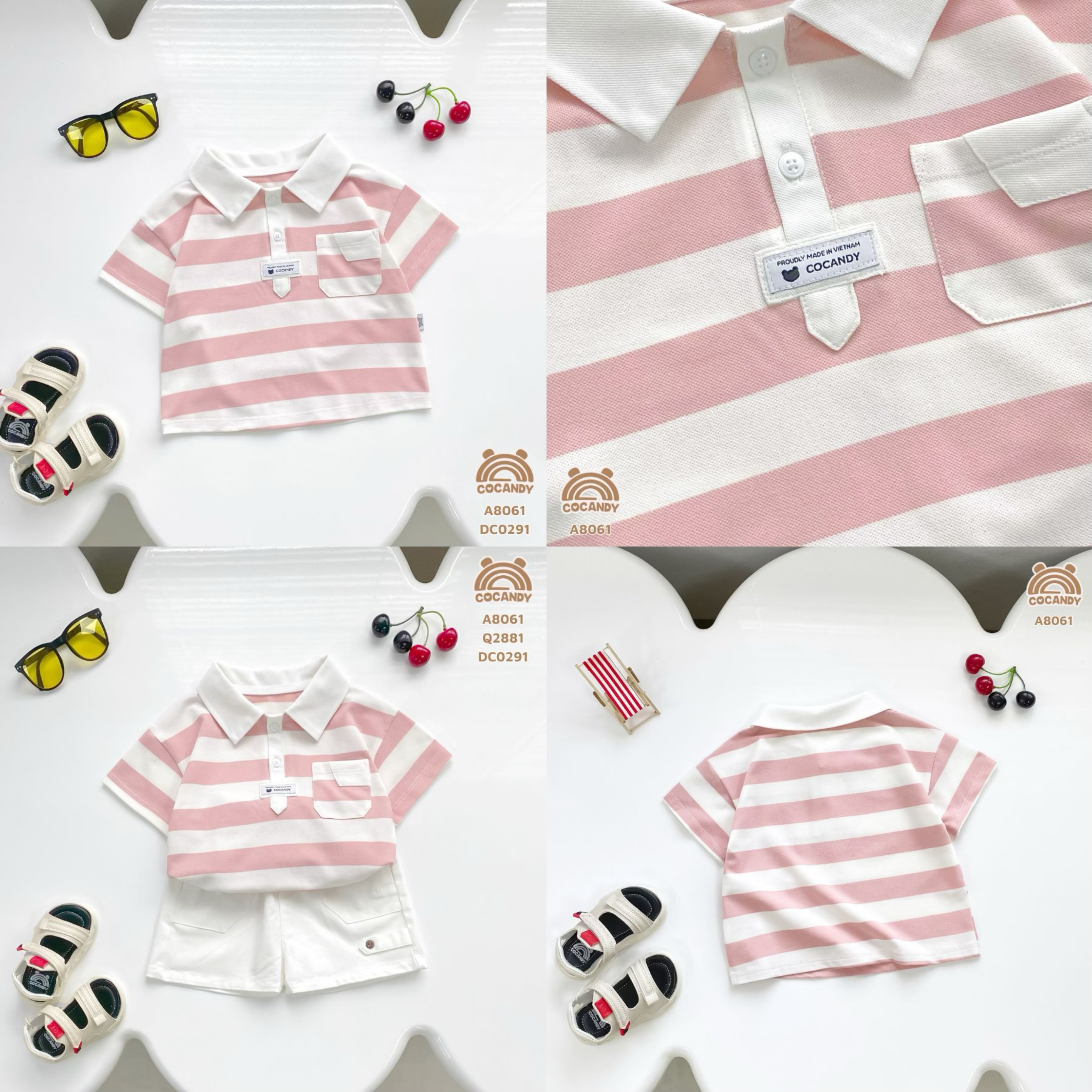 Chất liệu :- Áo cộc kẻ HỒNG polo A8061 chất cotton cá sấu CVC cao cấp co giãn cho bé vận động thoải mái. Họa tiết sọc ngang trắng - hồng pastel dịu mắt, mang lại cảm giác năng động, dễ phối với nhiều kiểu quần
