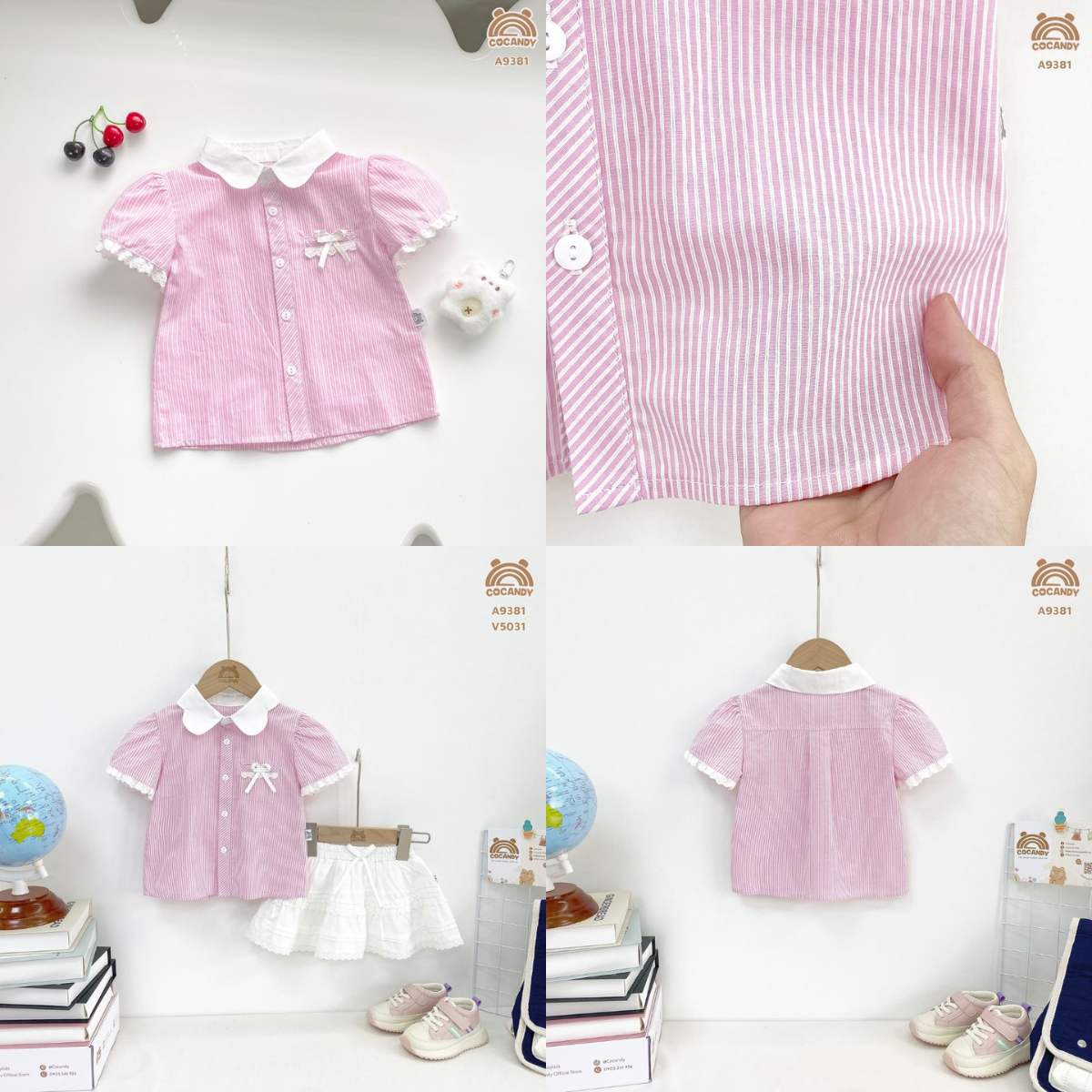 Chất liệu : - Áo cộc kẻ HỒNG ren tay phối nơ ngực A9381 chất liệu thô dệt gân cao cấp với chi tiết cổ bẻ tròn trắng nổi bật, tay phồng viền ren điệu đà. Điểm nhấn nơ nhỏ xinh trước ngực tạo nét dễ thương. Chất vải mềm, thoáng mát, phù hợp cho bé mặc đi học, đi chơi hay dạo phố