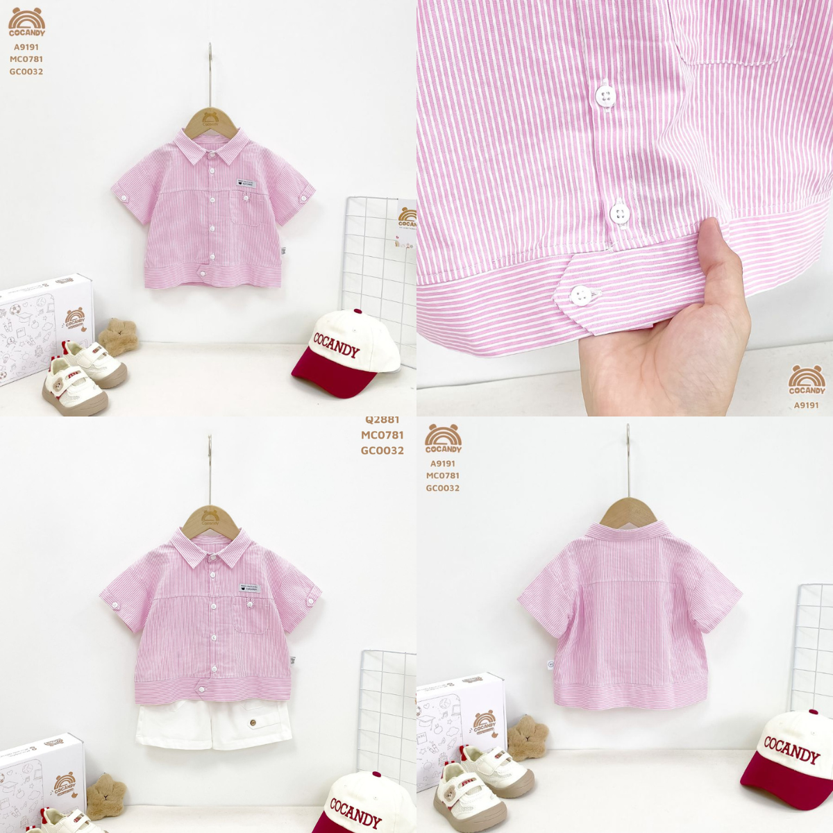 Chất liệu : - Áo cộc kẻ HỒNG sơ mi giả nẹp gấu áo A9191 chất liệu thô dệt gân cao cấp với chi tiết lai áo và cổ tay cắt ngang tạo điểm nhấn cá tính. Áo cổ bẻ form đẹp, logo đính nổi “COCANDY” đầy phong cách. Phù hợp cho bé diện đi chơi, đi học hay dạo phố cuối tuần