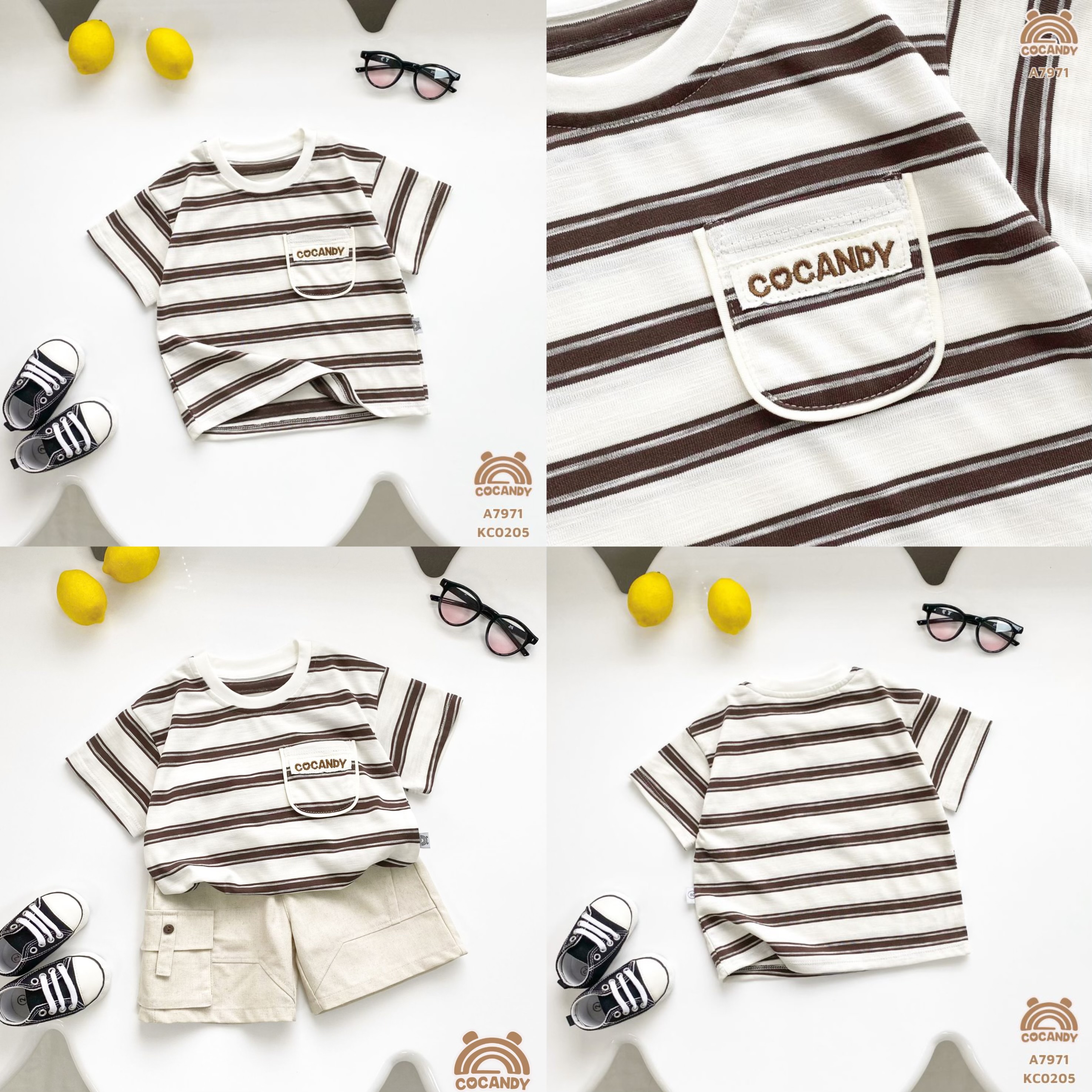 Chất liệu : - Áo cộc kẻ NÂU cổ tròn túi ngực CCD A7971 chất cotton tự nhiên nên mỏng nhẹ, và có khả năng thấm hút tốt hơn thông thường, tạo cảm giác dễ chịu cho bé. Tông kẻ nâu trung tính, phù hợp cả bé trai lẫn bé gái, dễ phối đồ, không kén da
