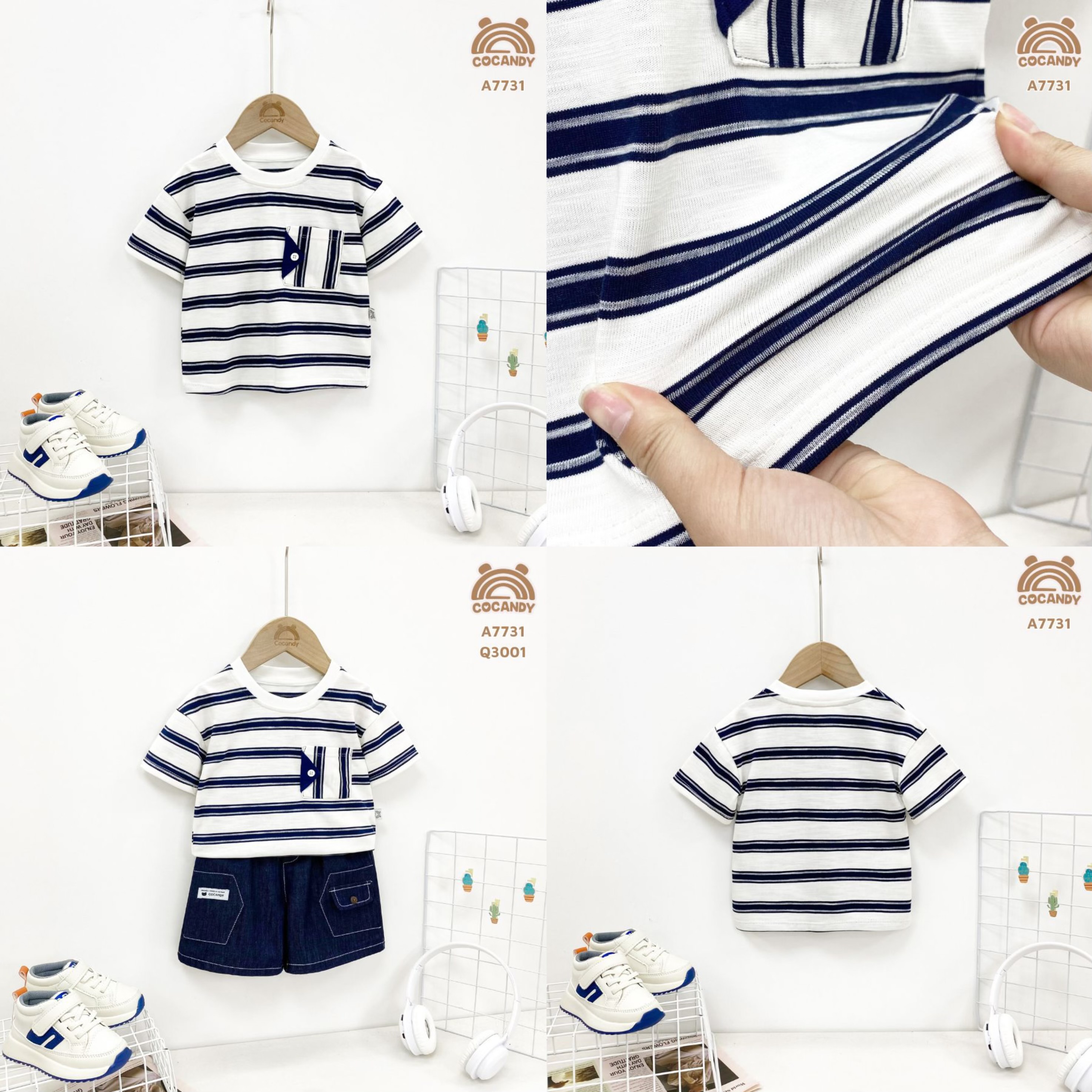 Chất liệu : - Áo cộc XANH THAN kẻ ĐỎ TRẮNG phối cổ TRẮNG A7731 chất chất cotton thô mềm mại và nhẹ mát. Bề mặt vải êm và thấm hút. Thiết kế túi tạo điểm nhấn xinh xắn