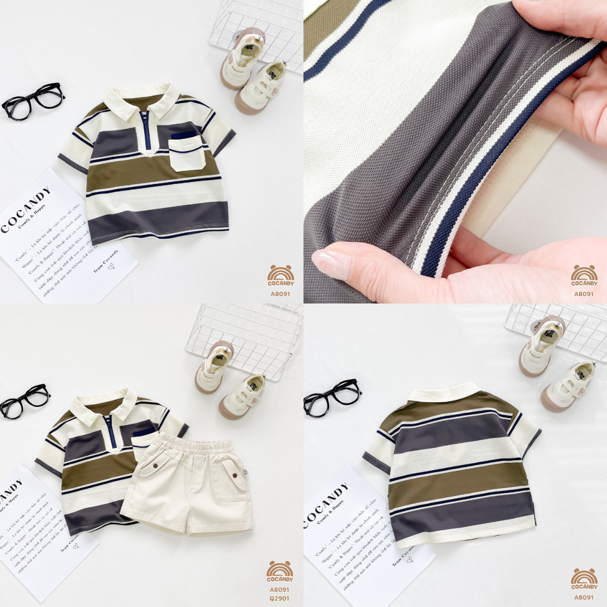 LƯU Ý: Sản phẩm chỉ gồm Áo cộc kẻ XANH RÊU cổ khóa phối túi A8091 chưa gồm quần