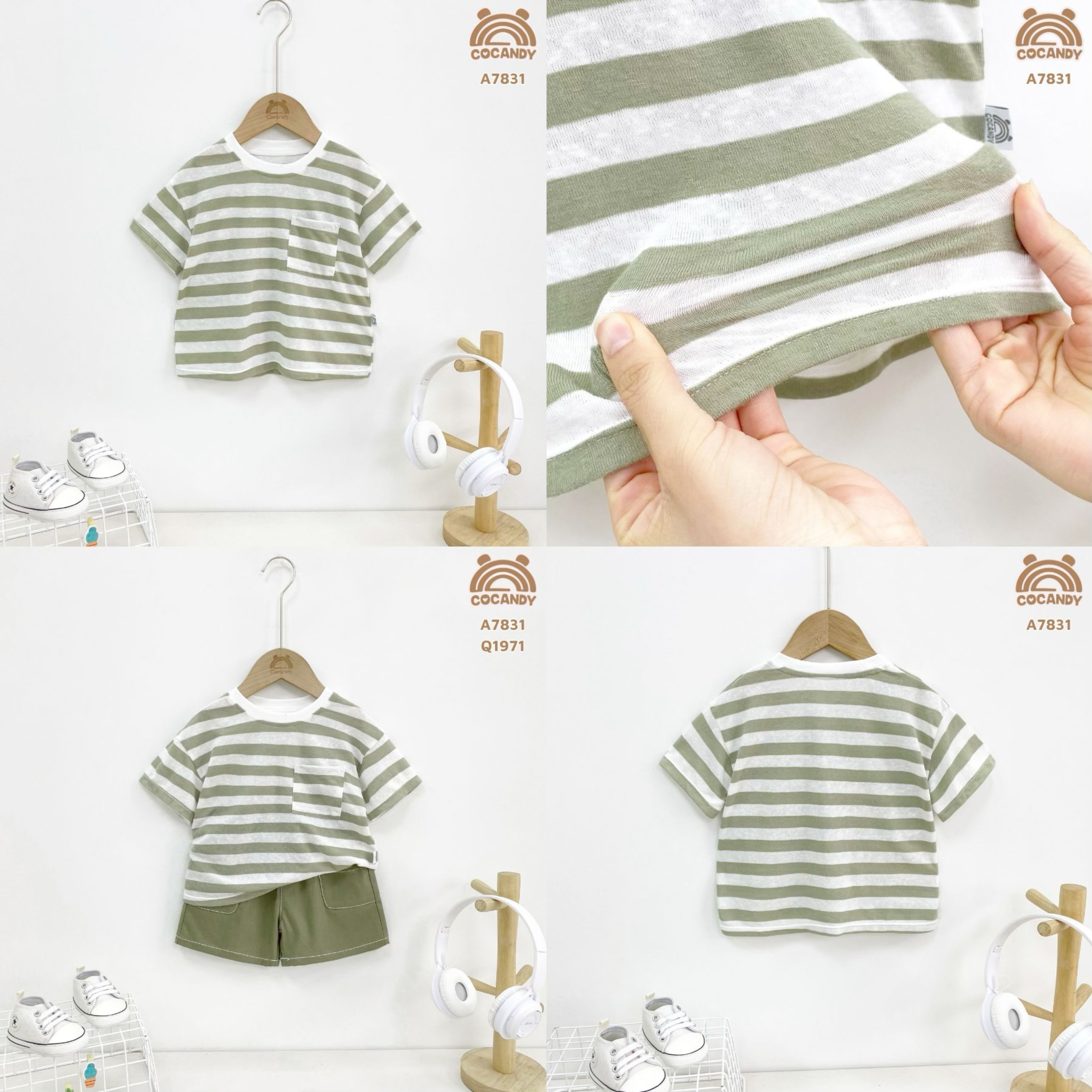 Chất liệu : Áo cộc kẻ phối túi ngực A783 chất cotton tự nhiên nên mỏng nhẹ, và có khả năng thấm hút tốt hơn thông thường, tạo cảm giác dễ chịu cho bé. Sợi vải đanh chắc và an toàn