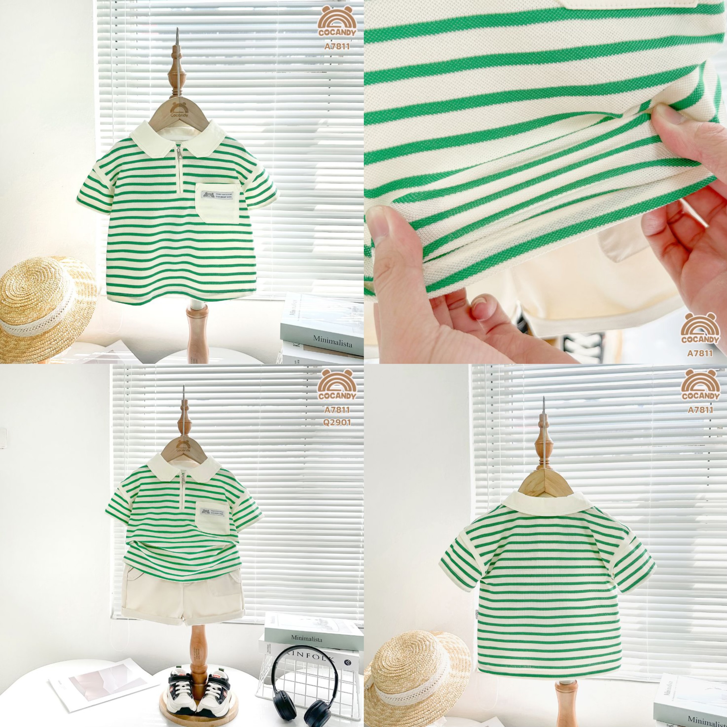 Chất liệu : - Áo cộc kẻ XLá phối Be cổ bẻ khóa A7811 thuộc dòng cotton cá sấu cao cấp với hàng ngàn lỗ thoáng khí, thích hợp cho bé vui chơi thoải mái. Màu sắc xanh lá kẻ tươi sáng và vô cùng sang dễ mix đồ