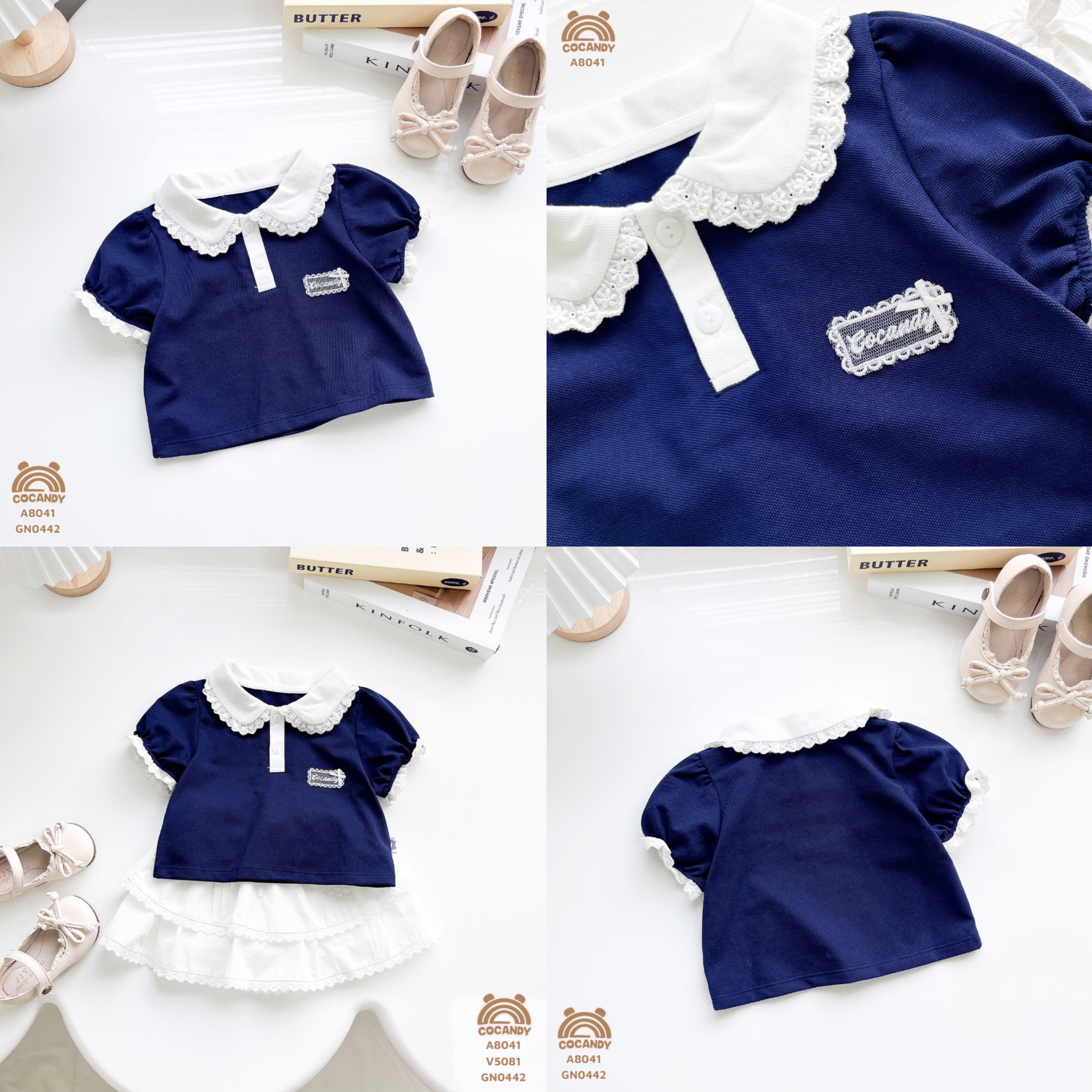 Chất liệu : - Áo cộc XANH THAN cổ sen phối nơ A8041 với chất liệu thun cá sấu CVC cao cấp co giãn nhẹ cùng hàng nghàn lỗ thông khí, độ thấm hút tốt. Thiết kế cổ phối ren tạo điểm nhấn. Bé đi học hay đi chơi đều đẹp