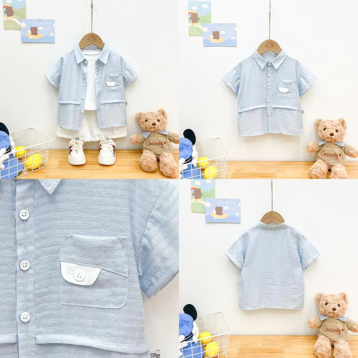 LƯU Ý: Sản phẩm chỉ gồm lẻ Áo cộc sơ mi kẻ XANH túi ốp ngực cách điệu E1461 chưa bao gồm các sản phẩm khác phối cùng