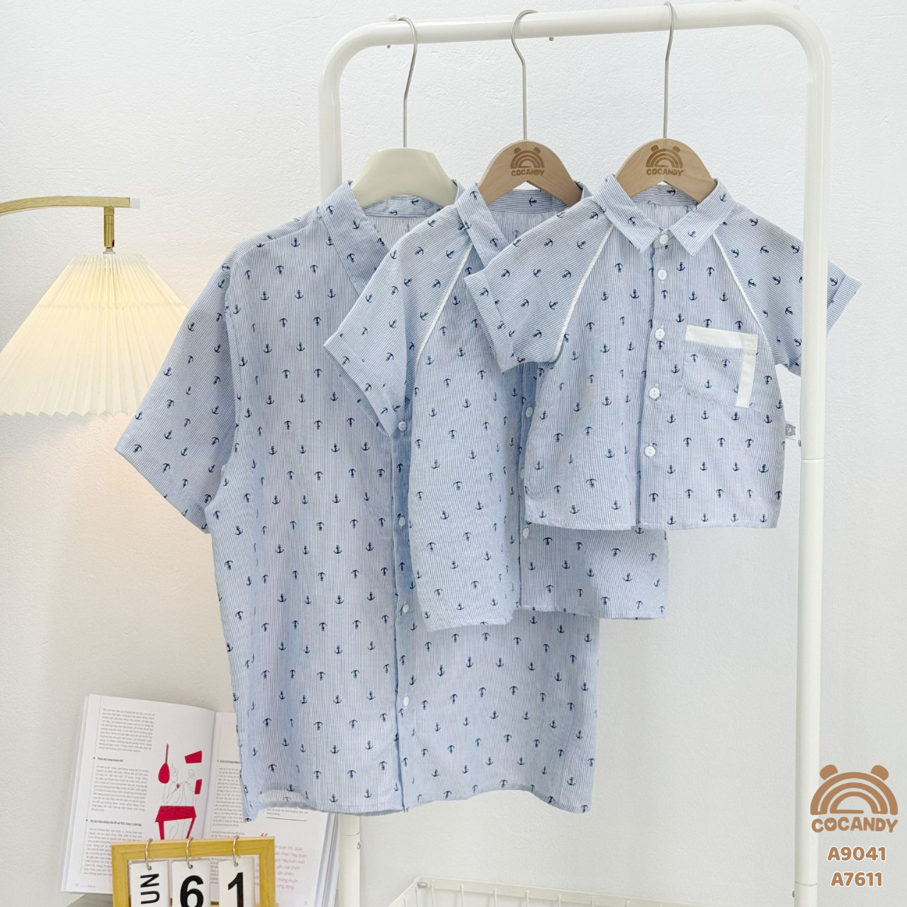 Áo cộc XANH sơ mi họa tiết mỏ neo BỐ