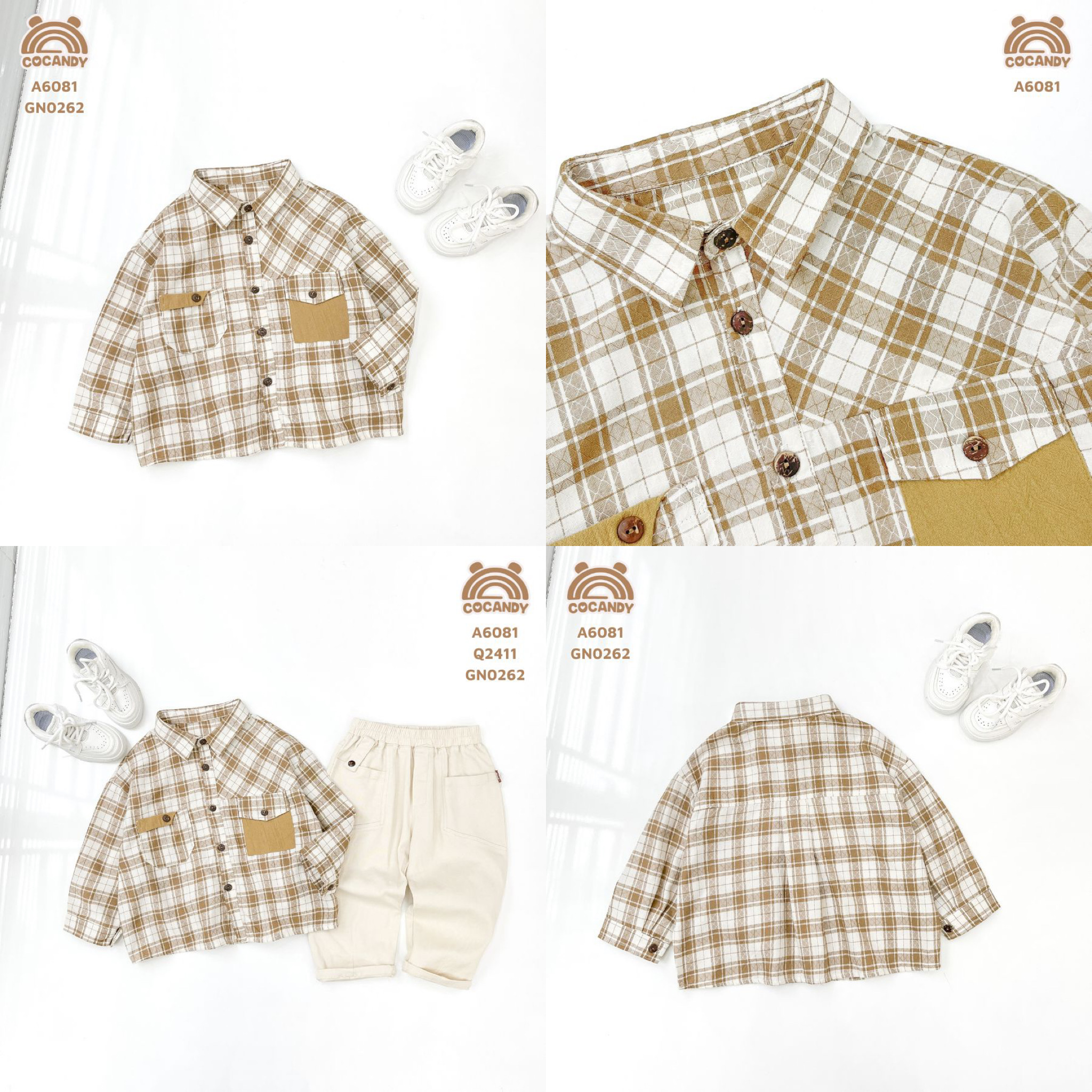 LƯU Ý: Sản phẩm chỉ gồm lẻ Áo dài caro NÂU 2 túi ngực cúc gỗ A6081 chưa bao gồm các sản phẩm khác