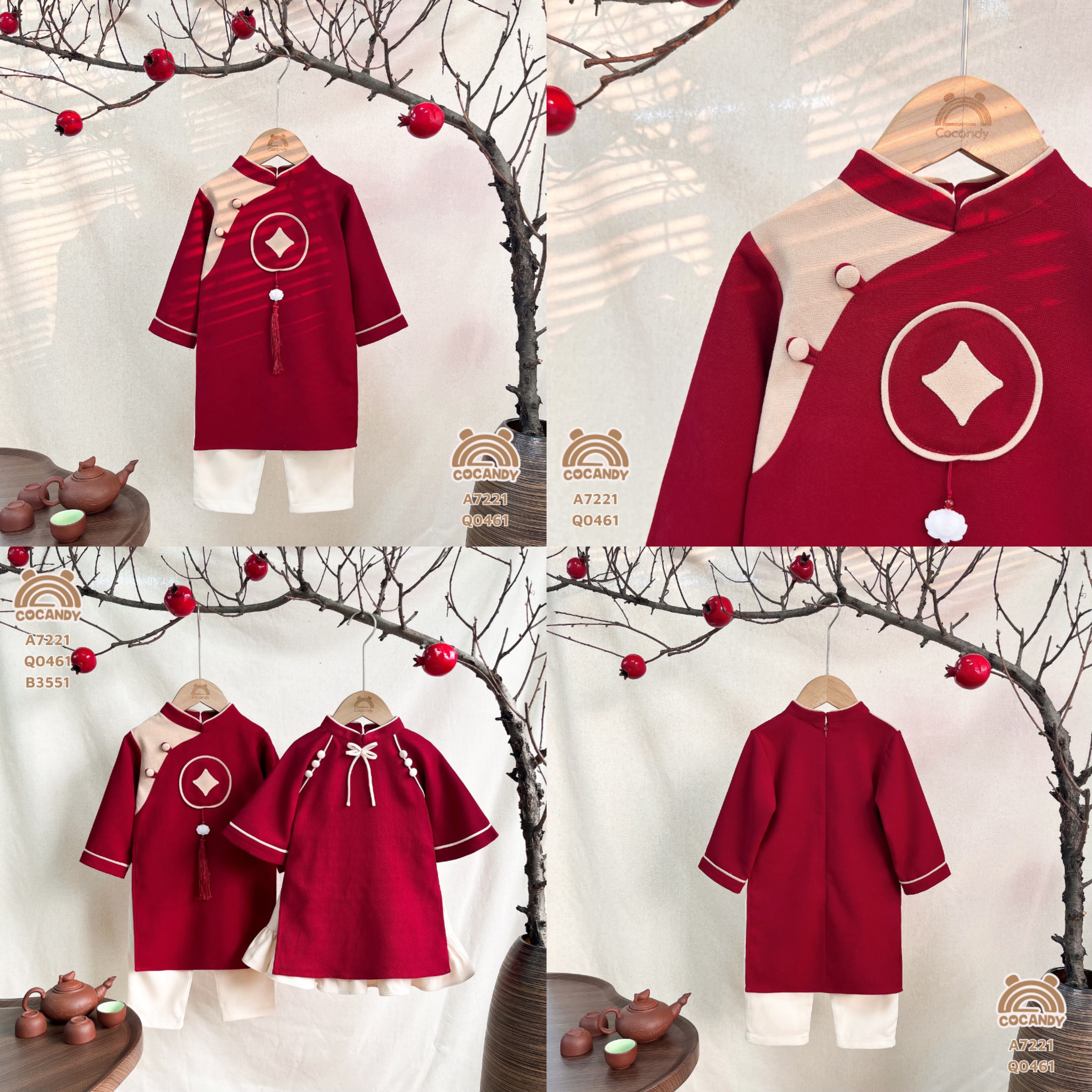 Chất liệu : Áo dài ĐỎ Tài Lộc A7221 từ chất nhung chéo cao cấp mềm mại với các chi tiết ngọc bội và đường may tinh tế. Sắc đỏ không chỉ là biểu tượng của niềm vui, sự hạnh phúc, mà còn là màu sắc gắn liền với tài lộc, may mắn. Cũng là lời chúc tới các bé bình an và hạnh phúc