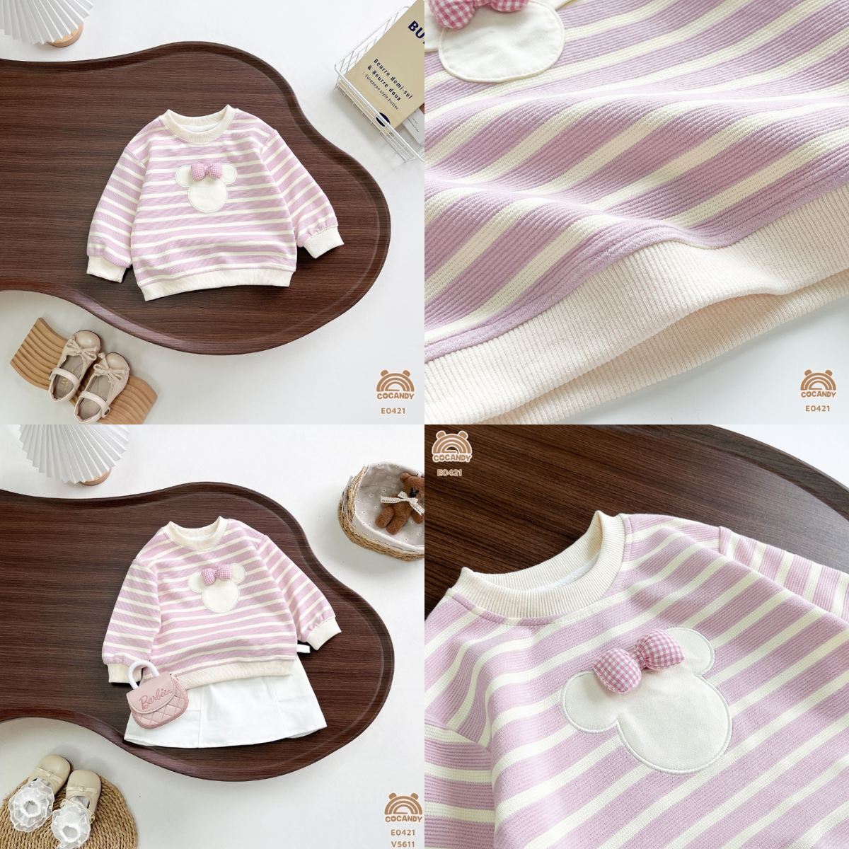 LƯU Ý: Sản phẩm chỉ gồm lẻ Áo dài HỒNG kẻ BE phối mickey E0421 chưa bao gồm các sản phẩm khác phối cùng