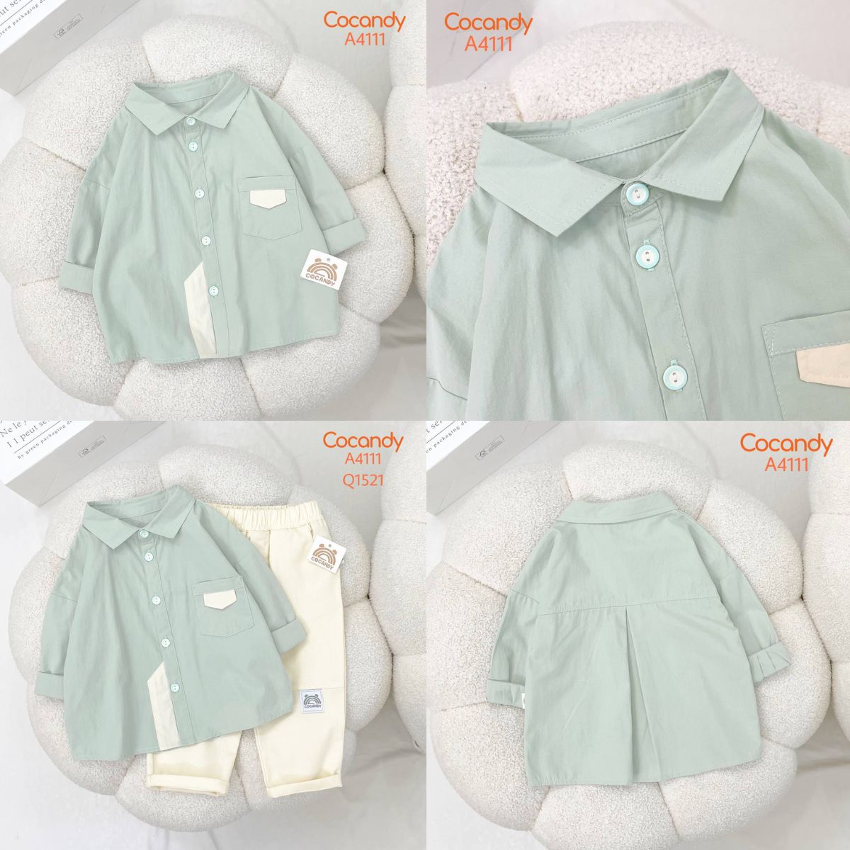 Chất liệu :- Áo dài XANH MINT phối vạt BE A411 chất liệu thô Hàn, bề mặt vải siêu mịn, ít nhăn. Tone màu xanh mint chuẩn không quá sáng giúp tôn da bé, dễ mặc dễ phối.