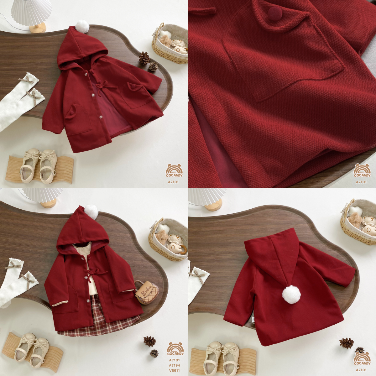 LƯU Ý: Sản phẩm chỉ gồm lẻ - Áo khoác ĐỎ mũ chóp bông A7101 chưa bao gồm các sản phẩm khác phối cùng