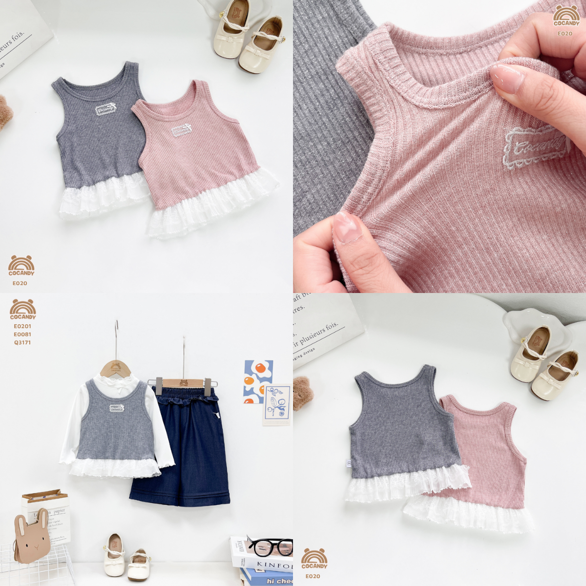 Chất liệu - ÁO sát nách E020 với chất liệu len dệt gân ánh kim lấp lánh, co giãn tốt, viền áo phối ren trắng xếp ly nhẹ nhàng nữ tính cho bé. Thiết kế kiểu ghi lê dễ phối cùng áo giữ nhiệt, áo phông hoặc sơ mi bên trong đều hợp