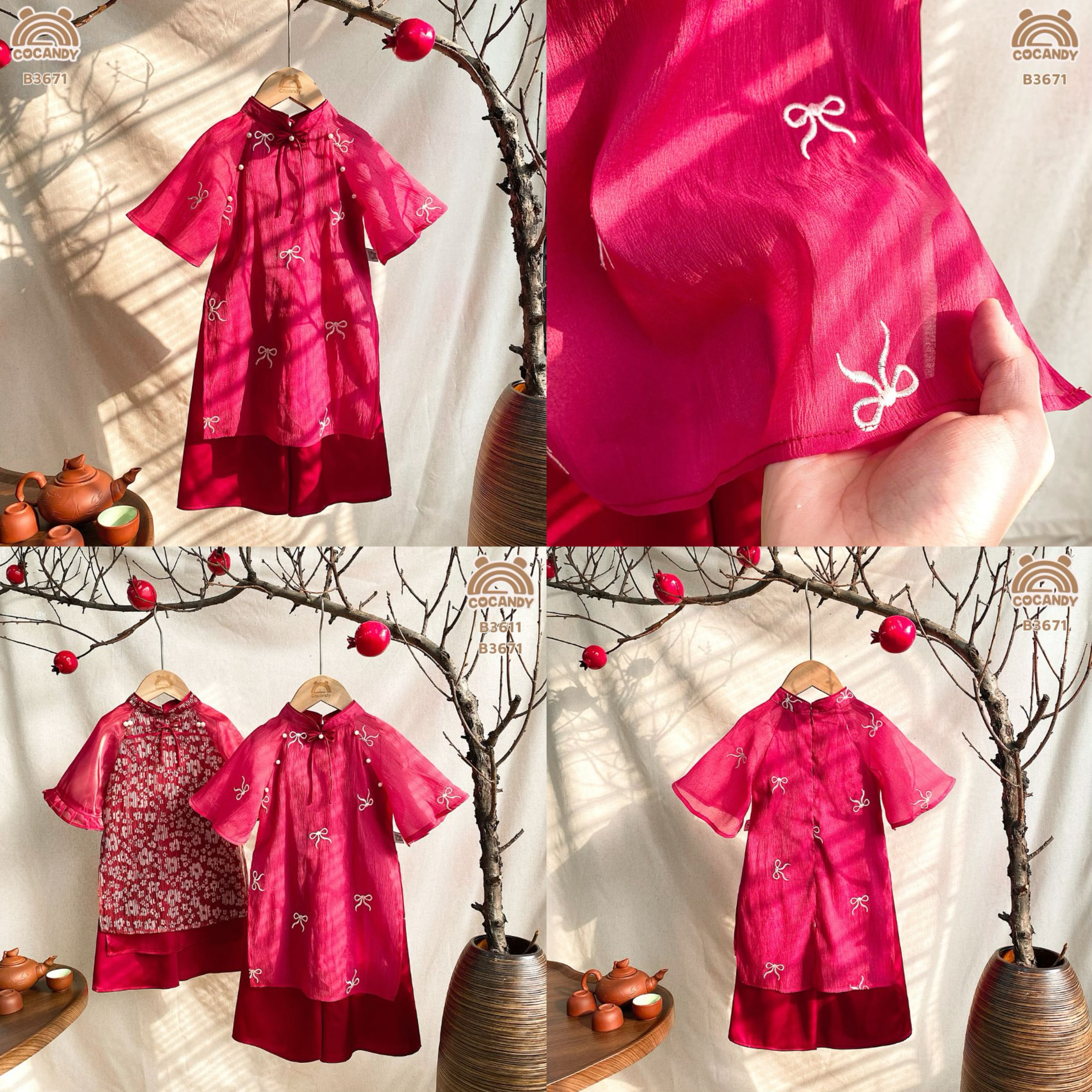 Chất liệu : Bộ áo dài ĐỎ Thanh Uyên B3671 chất liệu voan thêu điểm nơ xinh xắn trên nền đỏ tươi tắn. Quần lụa mềm thoáng nhẹ nhàng. Thiết kế cách tân với màu sắc và các chi tiết tinh xảo mang lại vẻ đẹp tươi mới và hạnh phúc