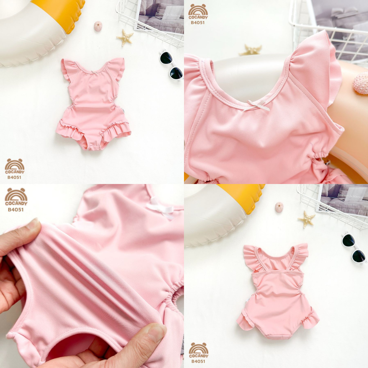 Chất liệu : - Bộ bơi cộc HỒNG TRƠN tay cánh tiên TẶNG kèm mũ chụp đầu B4051 chất liệu thun lạnh co giãn 4 chiều. Kết cấu sợi vải đanh chắc, thiết kế khoét eo với form dáng vô cùng xinh yêu cho bé diện đi bơi hè này
