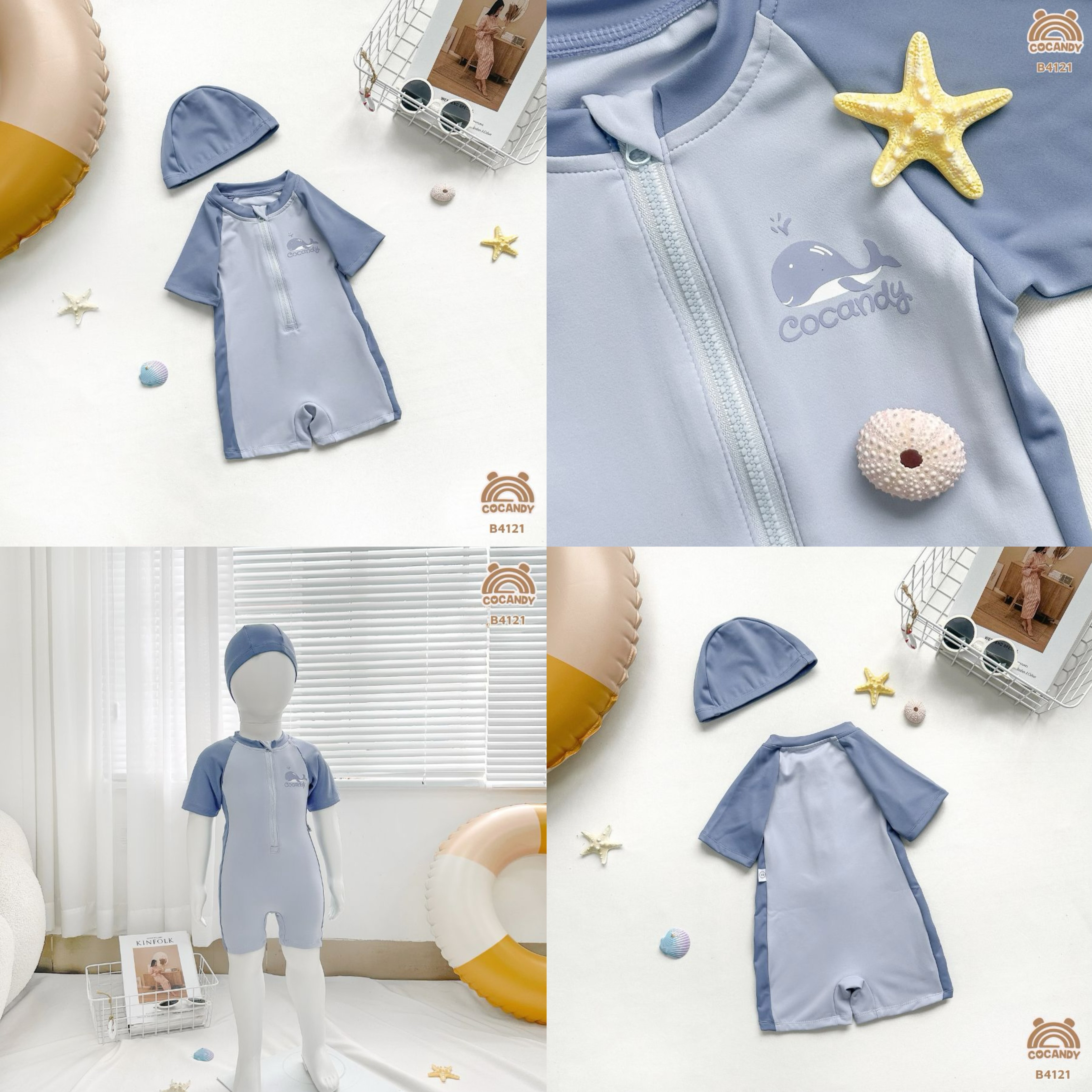 Chất liệu :- Bộ bơi XANH GHI trơn nẹp 2 màu B4121 TẶNG kèm mũ chụp đầu chất liệu thun lạnh co giãn 4 chiều. Kết cấu sợi vải đanh chắc, thiết kế form dáng vô cùng xinh yêu cho bé diện đi bơi hè này