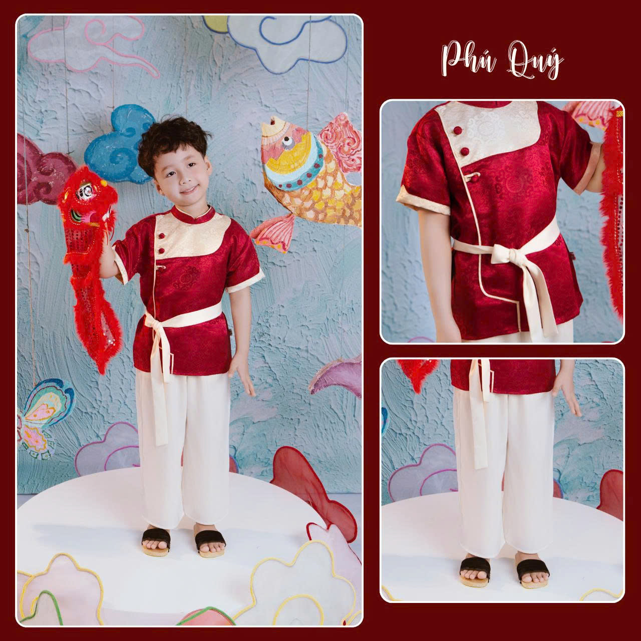 Chất liệu :- Bộ cách tân ĐỎ Phú Quý B4891 TẶNG kèm dây đai lưng với chất liệu lụa gấm nhẹ mát và thấm hút. Thiết kế truyền thống, áo cổ trụ ngắn tay thoải mái. Họa tiết vân nổi sang trọng, mang ý nghĩa cát tường và may mắn. Phù hợp cho bé diện trong dịp lễ hội, Tết