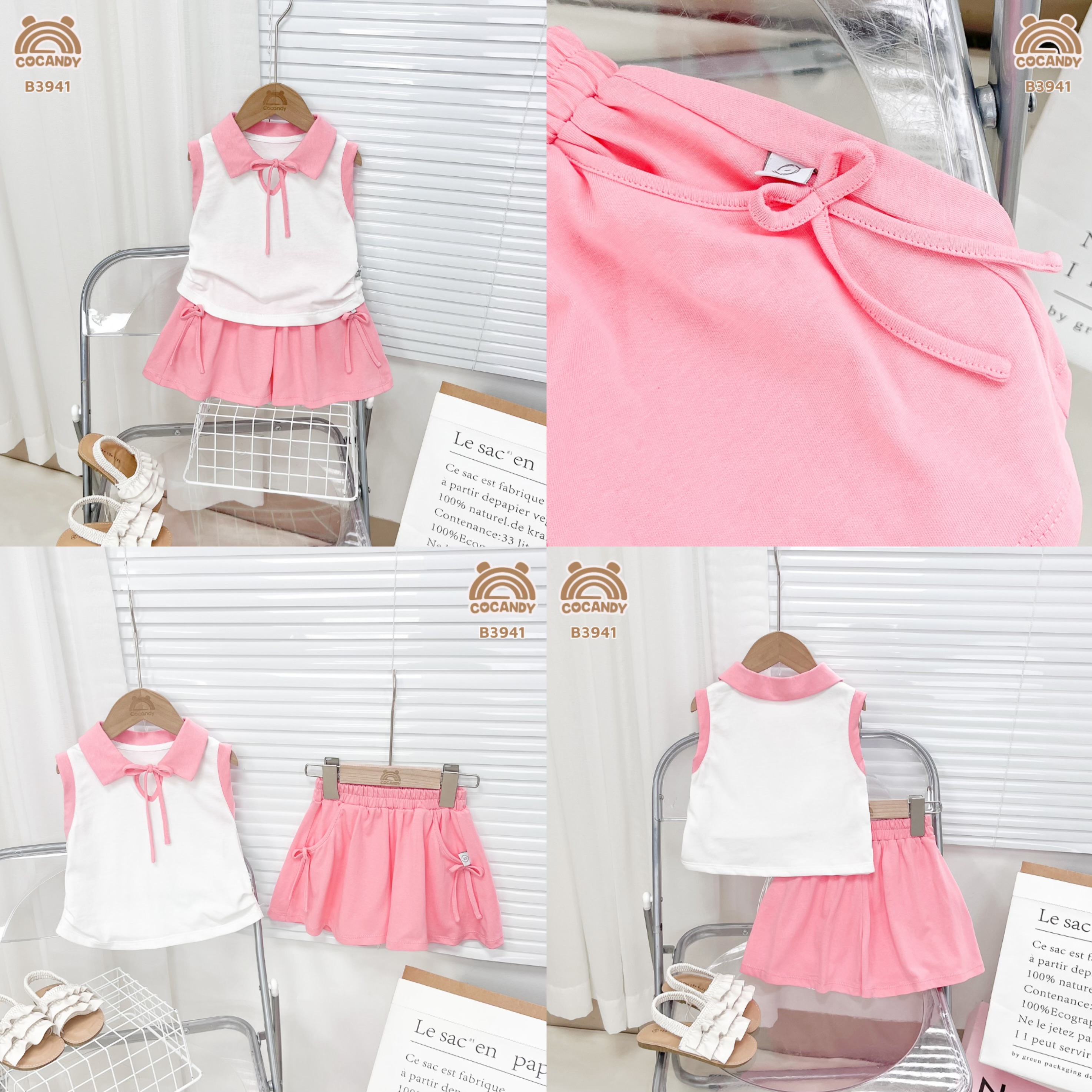 Chất liệu : Bộ cộc ba lỗ HỒNG TRẮNG cổ V thắt nơ B3941 chất cotton khô mềm mại và thấm hút. Cấu tạo vải nhẹ mát. Thiết kế xinh xắn, năng động và thoải mái