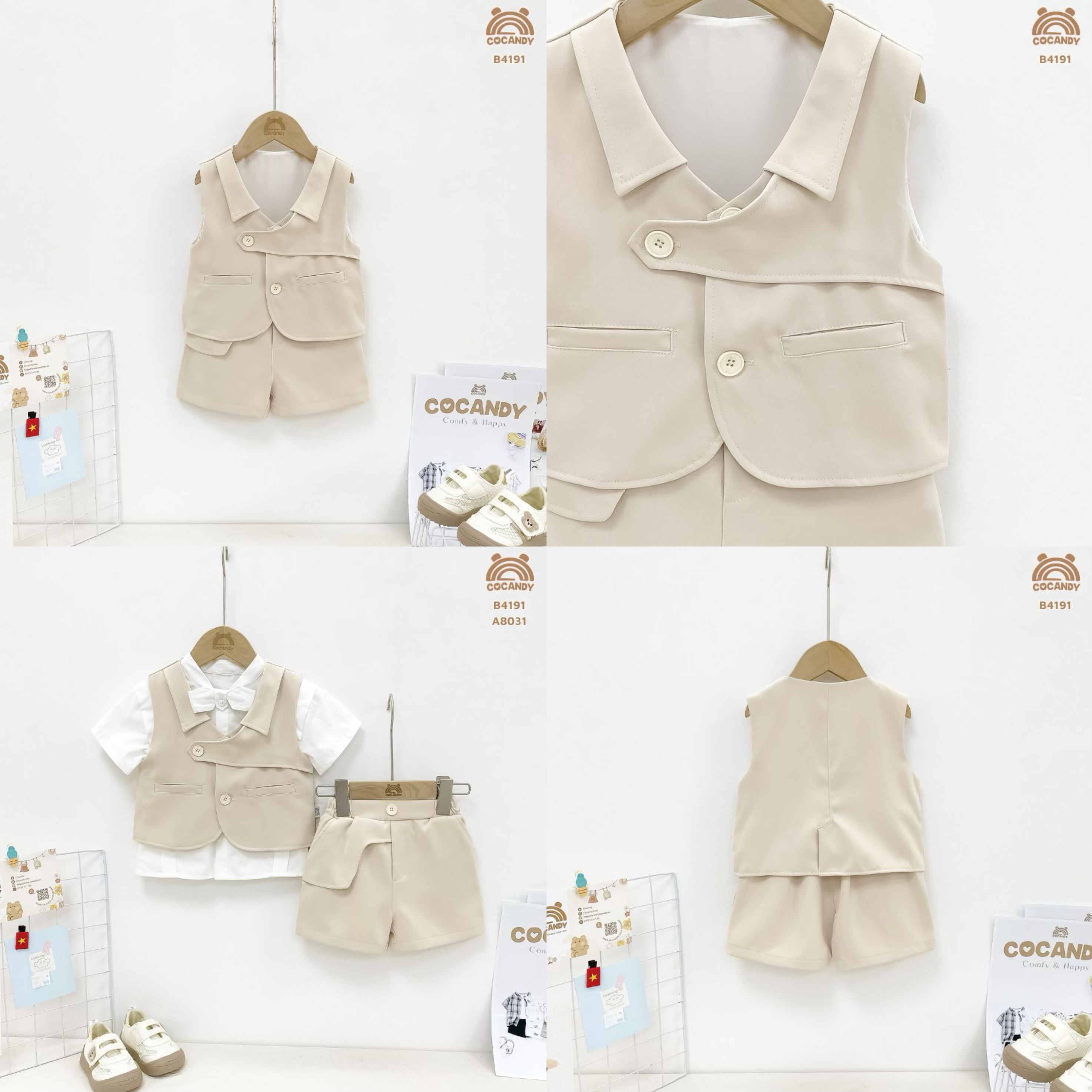 Chất liệu :- Bộ cộc gile BE cổ bẻ vạt ngực chéo B4191 từ chất liệu xước Nhật cao cấp mềm mịn, thoáng mát và ít nhăn, giúp bé thoải mái vận động cả ngày. Thiết kế với phom dáng hiện đại và thanh lịch, phù hợp cho các dịp đặc biệt như dự tiệc, chụp ảnh, lễ hội hay sự kiện trang trọng. Áo dáng đứng kết hợp chi tiết đai ngang eo nổi bật bên trong có lớp lót mỏng thấm hút