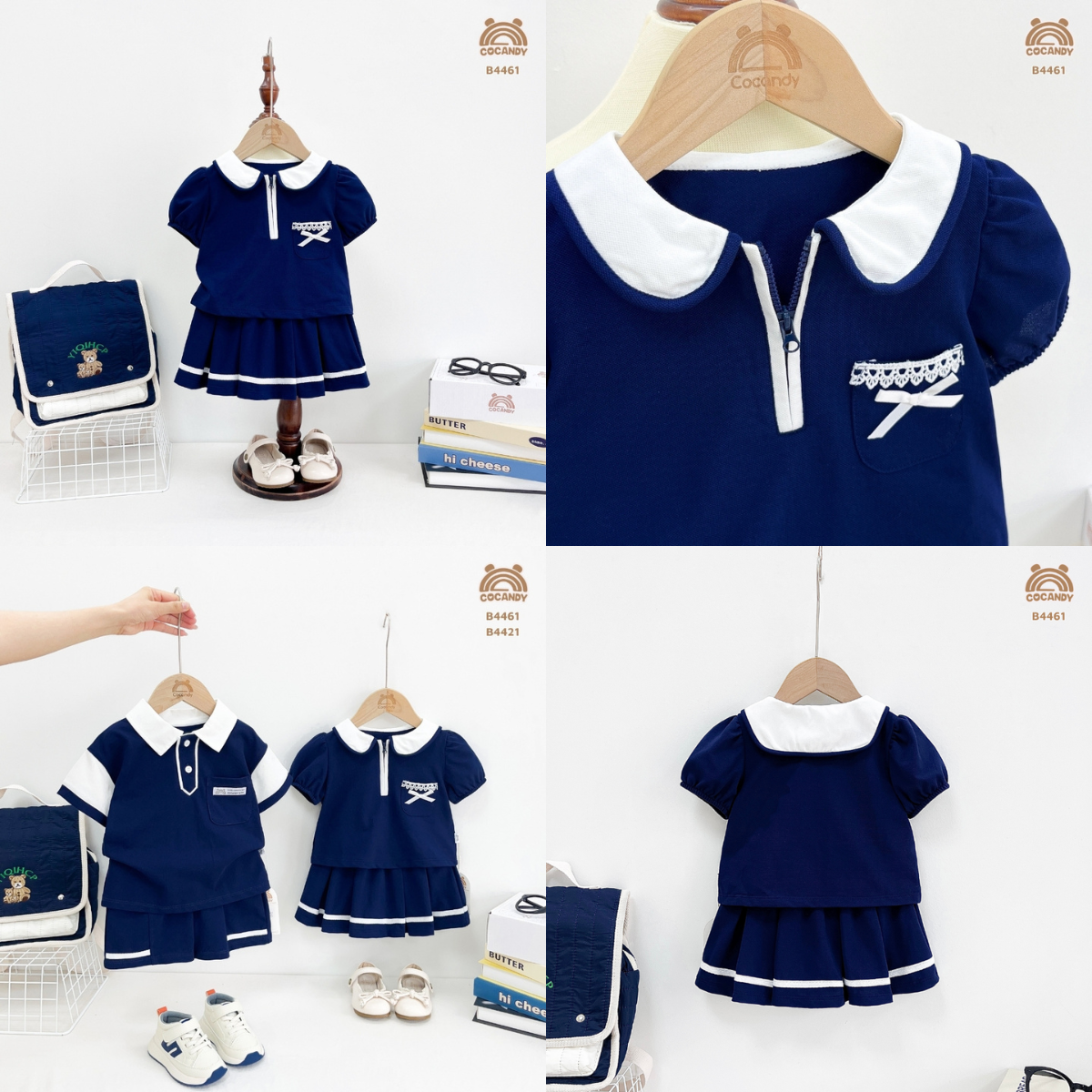 Chất liệu :- Bộ cộc XANH THAN polo cổ sen khóa + chân váy B4461 ới chất liệu thun cá sấu CVC cao cấp co giãn nhẹ cùng hàng nghàn lỗ thông khí, độ thấm hút tốt. Áo tay ngắn với cổ sen trắng phối khóa kéo tiện lợi, nhấn thêm chi tiết túi ngực có ren và nơ xinh xắn. Váy xếp ly phối sọc trắng, cạp chun co giãn thoải mái, bên trong có lớp lót quần bé tha hồ vận động