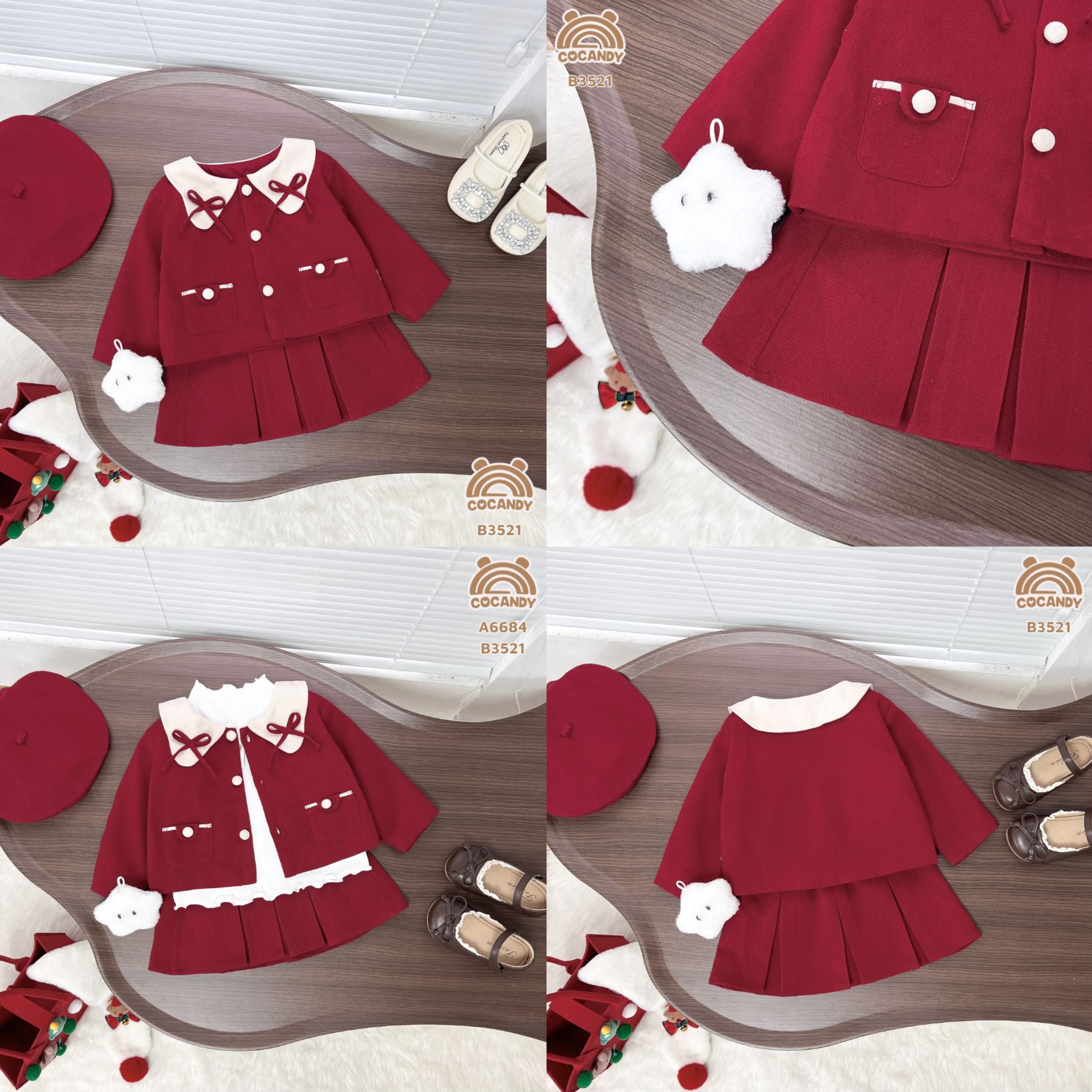 Chất liệu : Bộ dài ĐỎ cổ BE 2 nơ ĐỎ B3521 từ chất liệu nhung chéo Cao cấp mặt siêu mềm mại, độ dày vừa phải form áo rộng ngang lên dáng đẹp bên trong lót lớp habutai nhẹ nhàng, chân váy có may sẵn lớp quần lót phía trong bé hoạt động thoải mái.