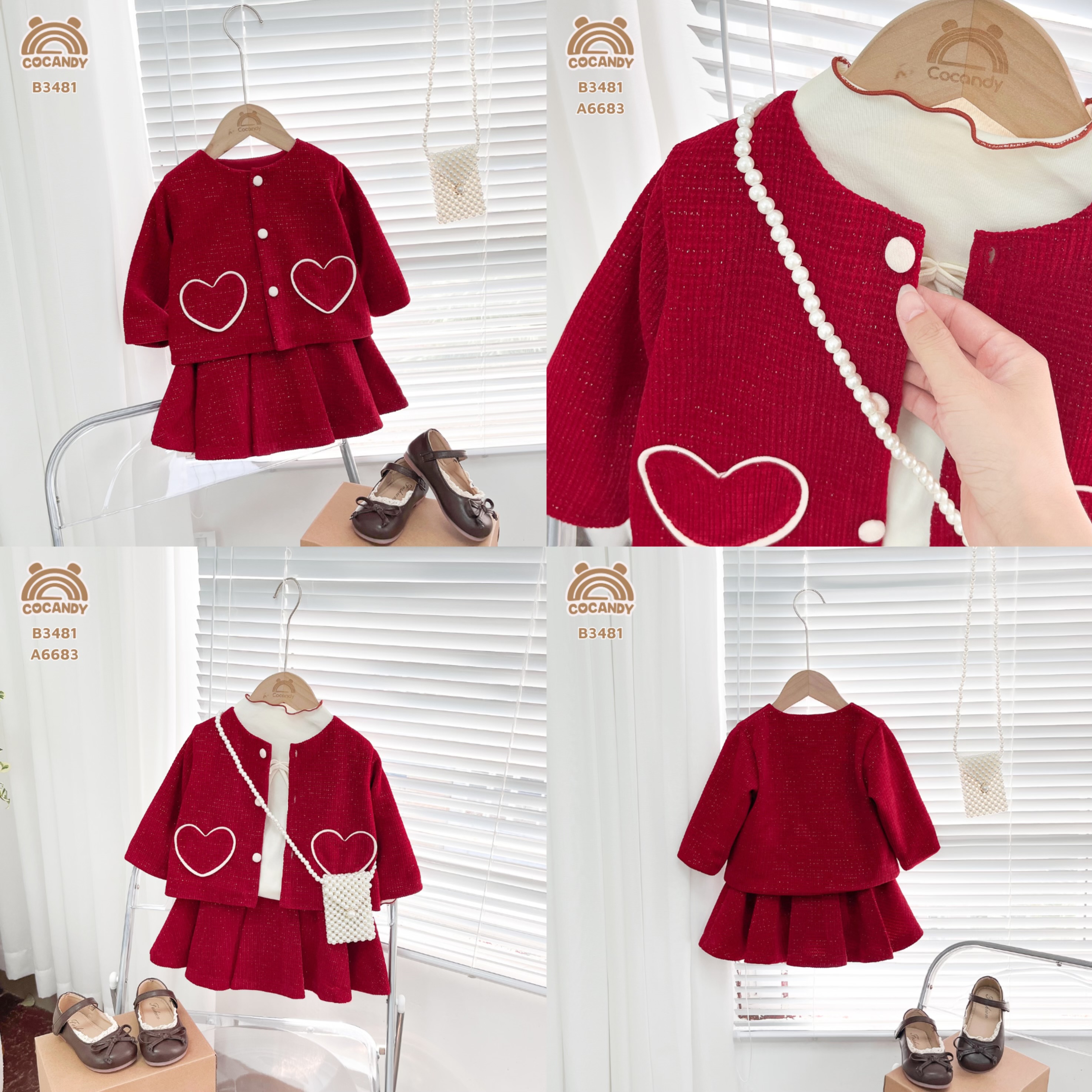 Bộ dài ĐỎ dạ tweet túi trái tim