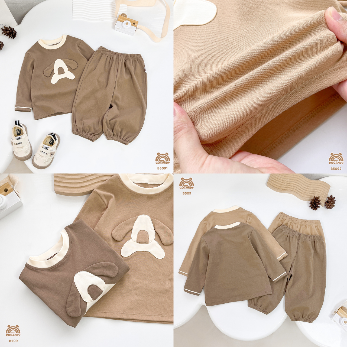 Chất liệu :-- Bộ dài NÂU họa tiết cún nâu B509 với chất liệu cotton borip mềm mại, thấm hút tốt, dễ chịu với làn da bé. Dòng chất liệu do Cocandy chọn lọc mẹ có thể giặt máy thoải mái ko lo bai dão hay vón lông. Thiết kế đáng yêu, ngộ nghĩnh, gấu quần bo chun thoải mái, dễ dàng vận động. Phù hợp cho bé mặc ở nhà, đi chơi hay dạo phố
