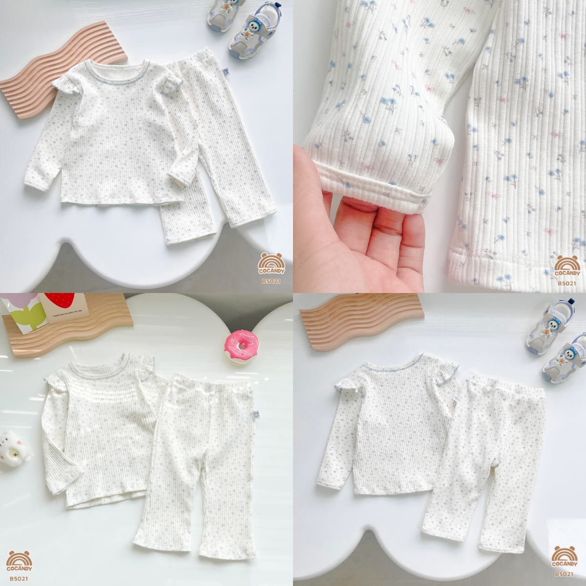 Chất liệu :- Bộ dài XANH hoa nhí B5021 chất liệu cotton dệt gân mềm mại, co giãn 4 chiều cùng họa tiết hoa nhí đáng yêu phù hợp mặc tiết thu đông. Thiết kế vai áo có nhún bèo tạo điểm nhấn, ống quần loe nhẹ siêu điệu đà cho bé gái