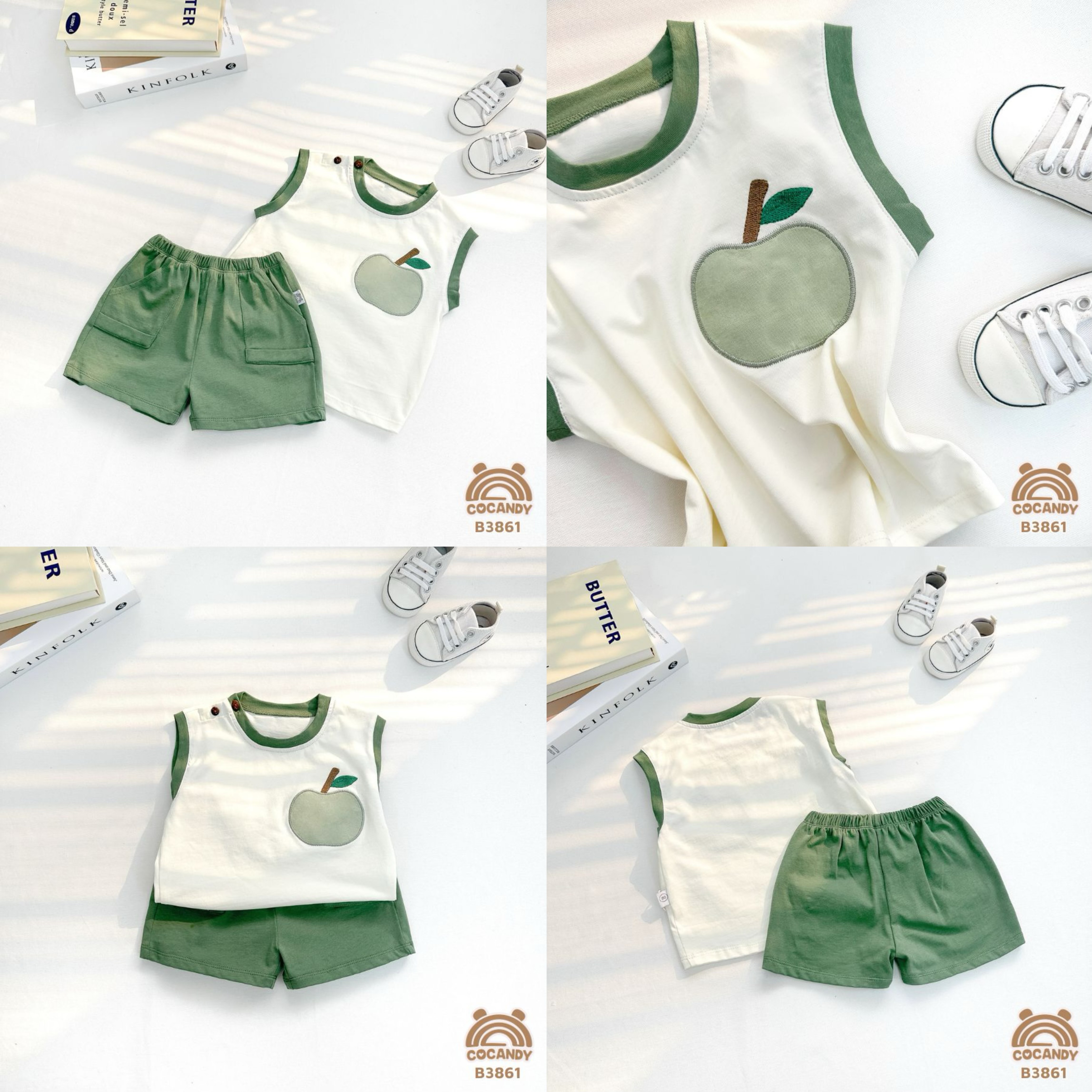 Chất liệu : - Bộ sát nách táo XANH B3861 với chất liệu cotton 100%, ưu điểm siêu thấm hút với kết cấu vải vừa phải tạo độ thoáng mát cho làn da bé. Phù hợp các bé hay vận động, dễ ra mồ hôi