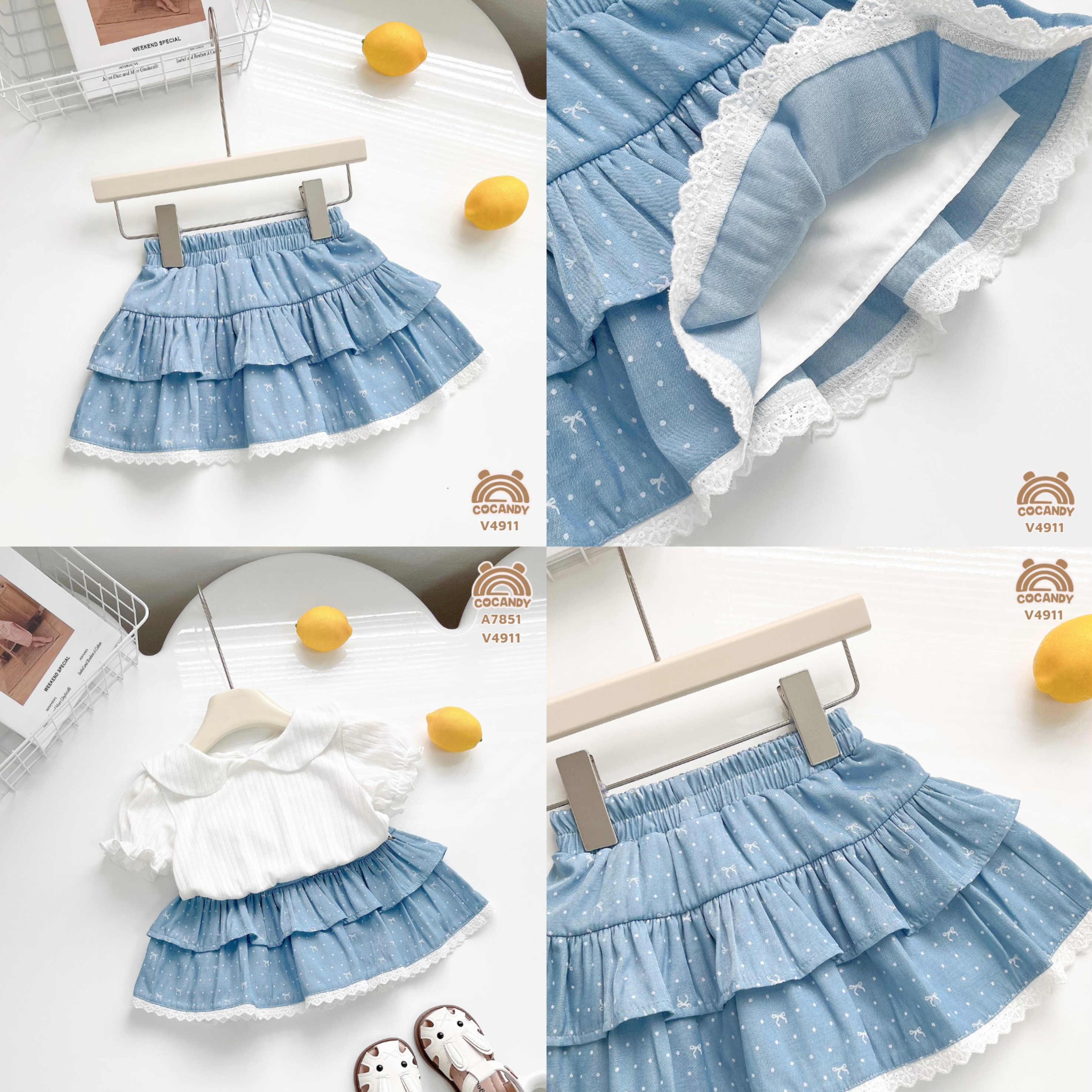 LƯU Ý: Sản phẩm chỉ gồm Chân váy cộc XANH NHẠT họa tiết chấm bi nơ V4911 chưa bao gồm các sản phẩm khác