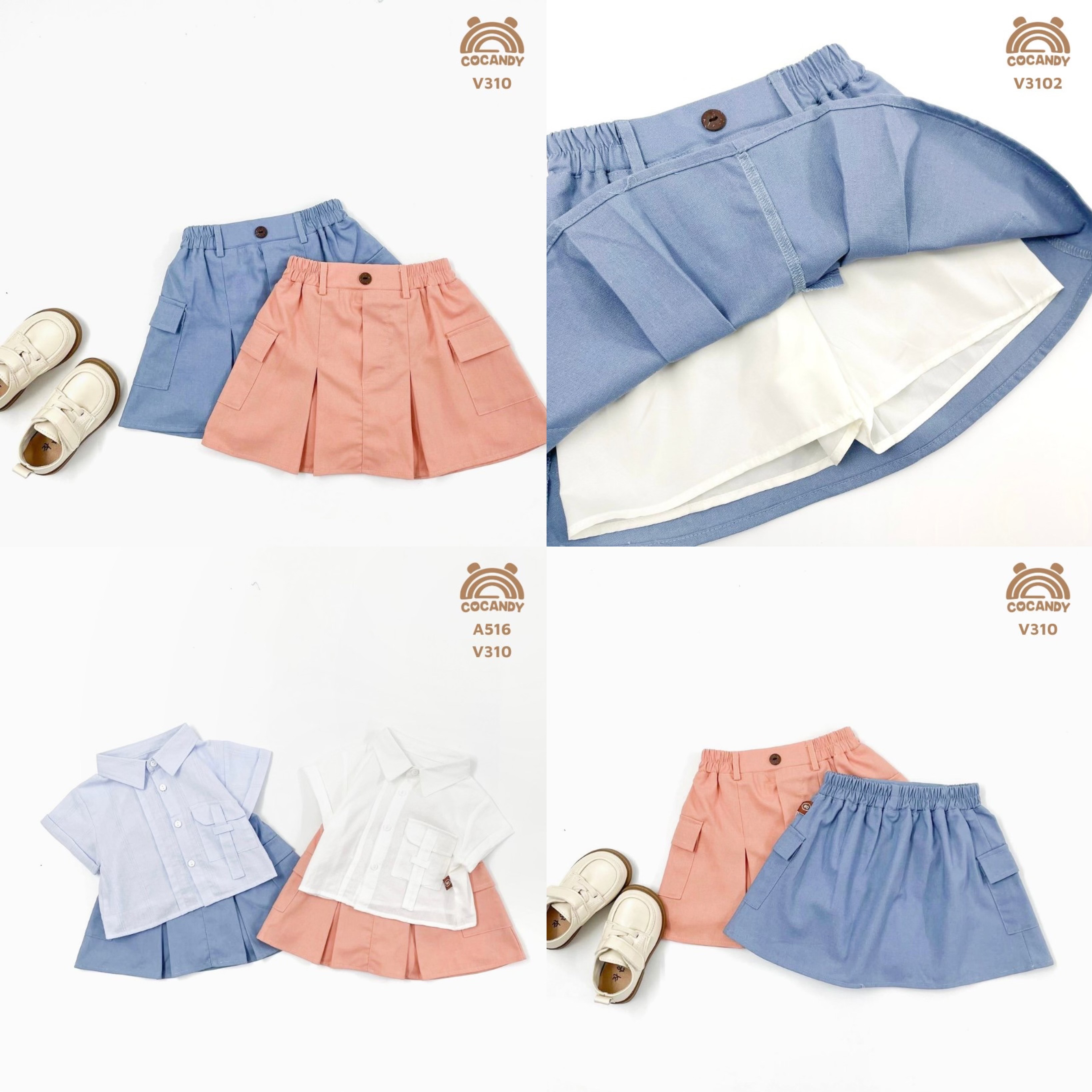 Chất liệu : Chân váy cộc XANH, HỒNG 2 túi V310 từ chất liệu Linen siêu thoáng khí, đặc biệt nhanh khô và an toàn với da bé. Kiểu dáng thiết kế dành riêng cho bé với lớp lót quần bằng habutai bên trong mềm mỏng, bé tha hồ vận động nhưng vẫn thoải mái