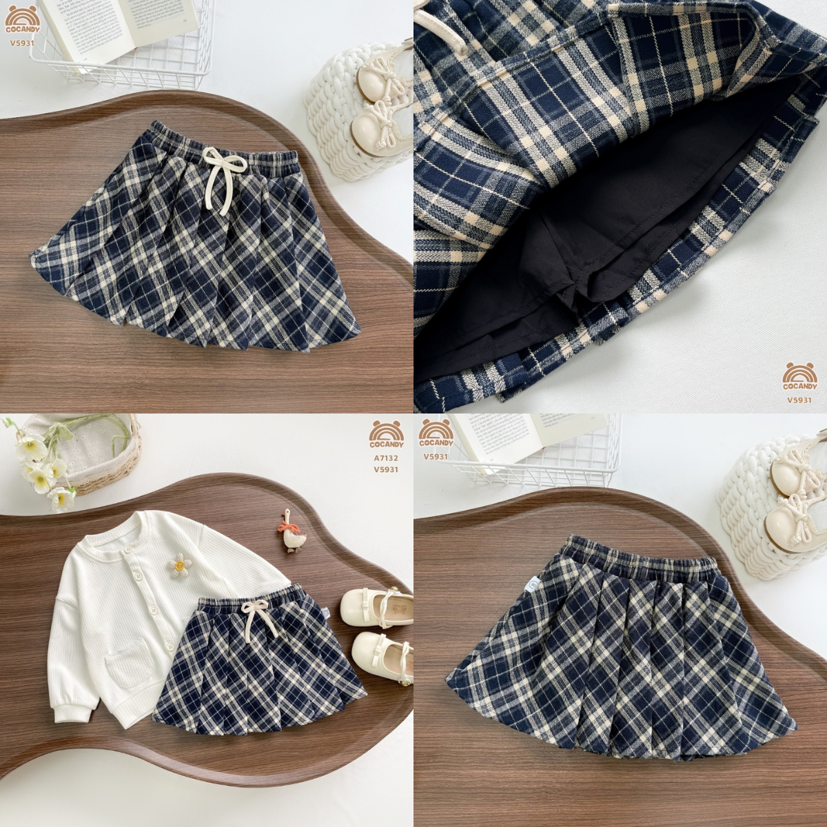 Chất liệu - Chân váy kẻ XANH BE phối nơ BE V5931 chất liệu nhung chéo CAO CẤP bề mặt mịn, độ dày vừa phải. Bên trong có lớp quần cotton tiện lợi cho bé vận động thoải mái, thiết kế đáng yêu dễ mix đồ