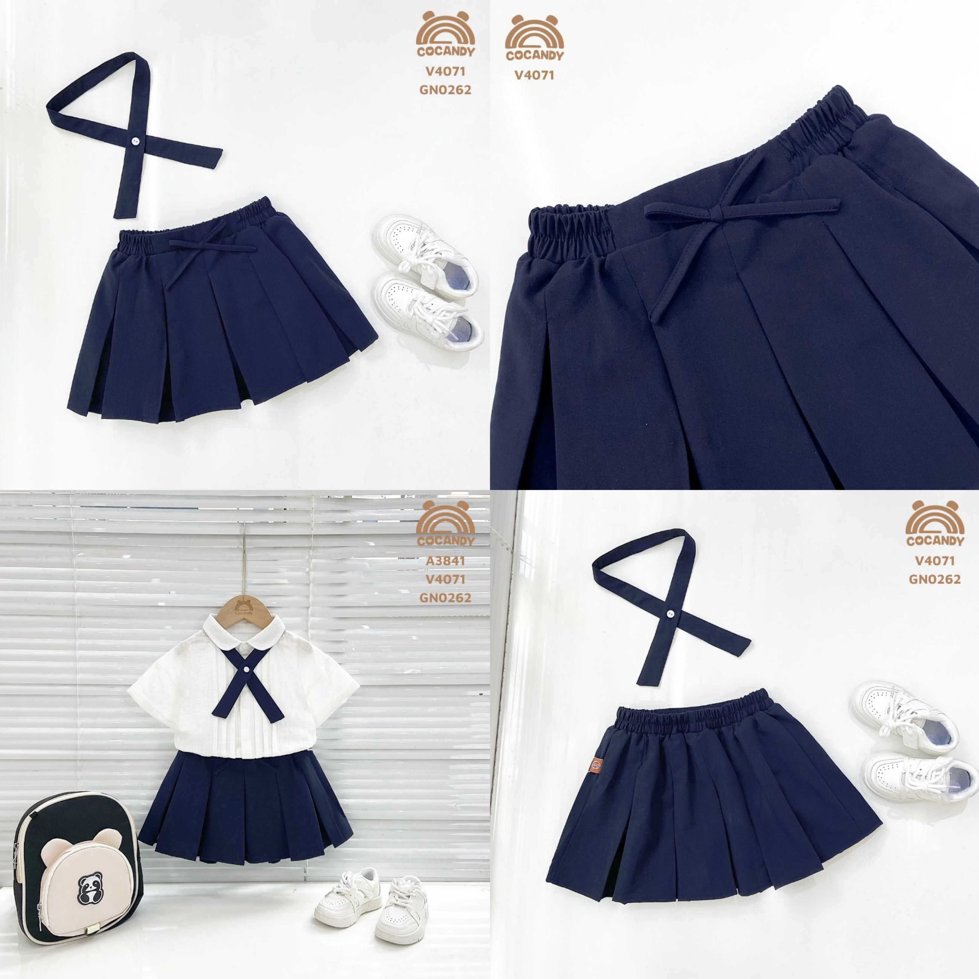 Chân váy XANH THAN xếp ly 1 nơ nhỏ