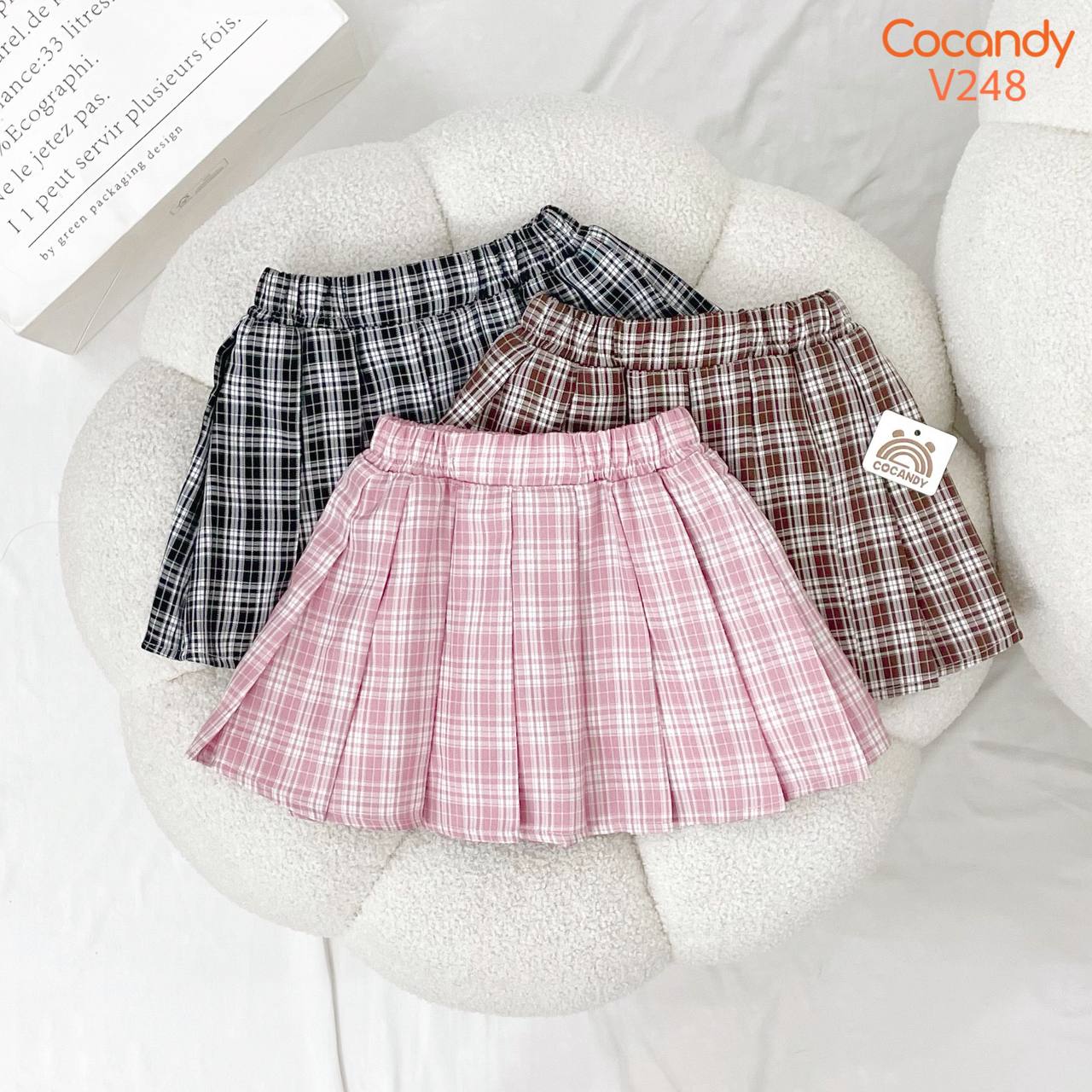 Chân váy xếp ly caro NÂU 2 nơ tặng cà vạt