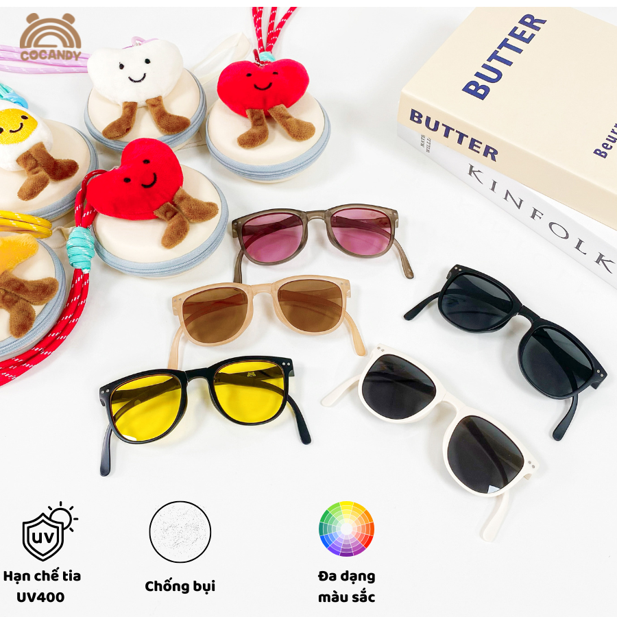 - Kính cocandy + hộp tròn KC019 có chỉ số UV400, chất liệu nhựa Plastic an toàn cho trẻ nhỏ, màu sắc thời trang tiện phối đồ, cản nắng gió khi bé đi ra ngoài, phù hợp với bé từ 1- 6 tuổi.