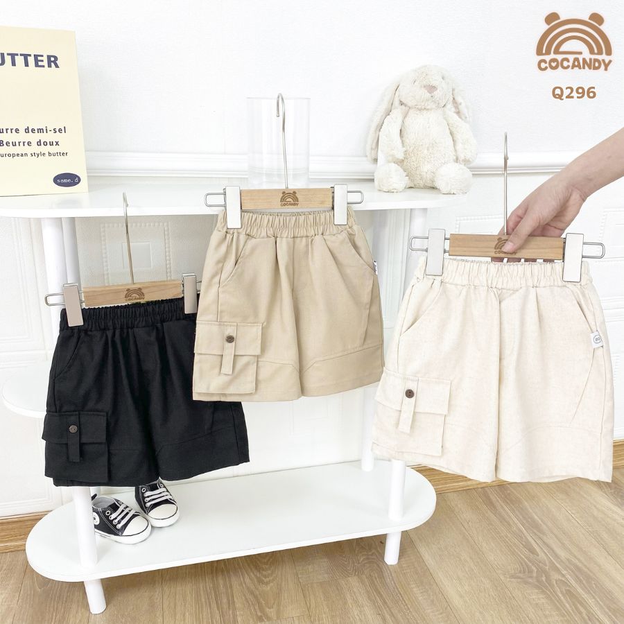 Chất liệu : Quần cộc ĐEN 2 túi hộp nắp dây Q296 chất liệu linen mềm và thông khí. Thiết kế dáng lửng qua gối phù hợp bé mặc đi chơi, đi học hoặc dự tiệc