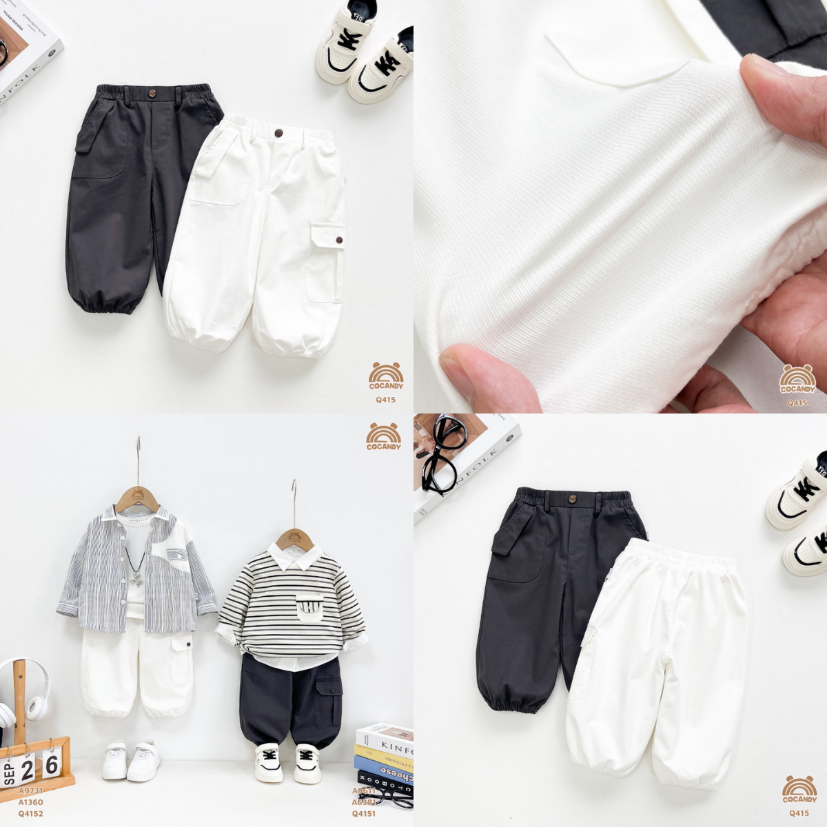 Chất liệu :- QUẦN dài bomber túi hộp chéo Q415 chất liệu kaki mềm, co giãn nhẹ, ít nhăn lại đứng form. Thiết kế bo gấu thời trang cùng túi hộp chéo năng động; phù hợp mix với các form áo khác nhau, độ dày vừa phải thích hợp mặc nhiều thời tiết