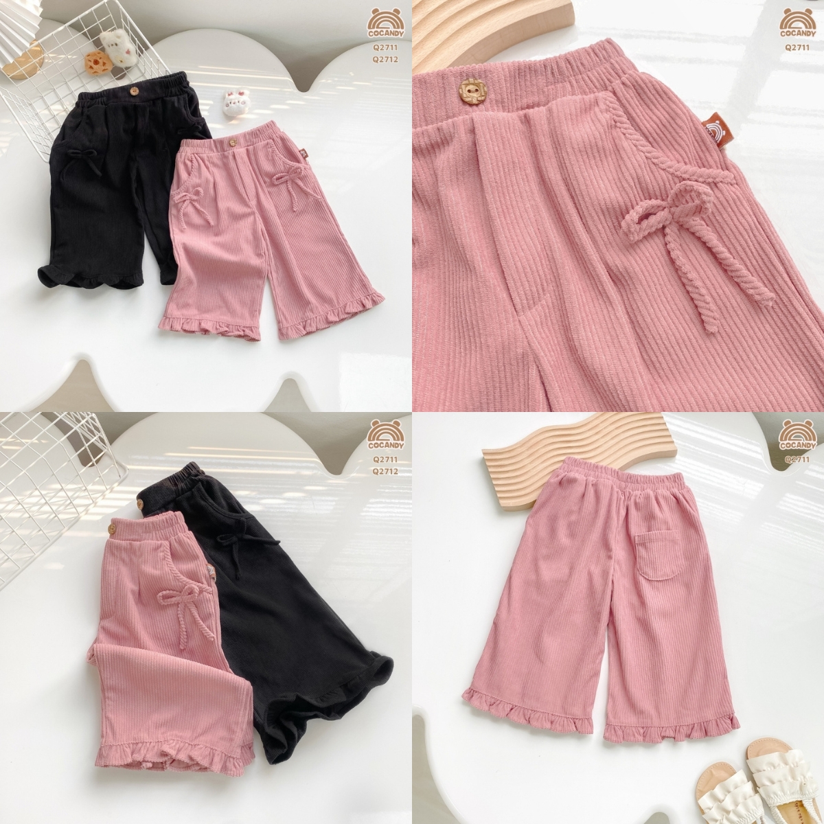 Chất liệu :- Quần dài nhung HỒNG, ĐEN gấu nhún bèo Q271 chất liệu nhung tăm mềm và mịn, form quần ống xuông xinh xắn và thoải mái. Bé tha hồ vận động và vui chơi. Vải vừa tay giữ ấm tốt phù hợp tiết trời thu đông