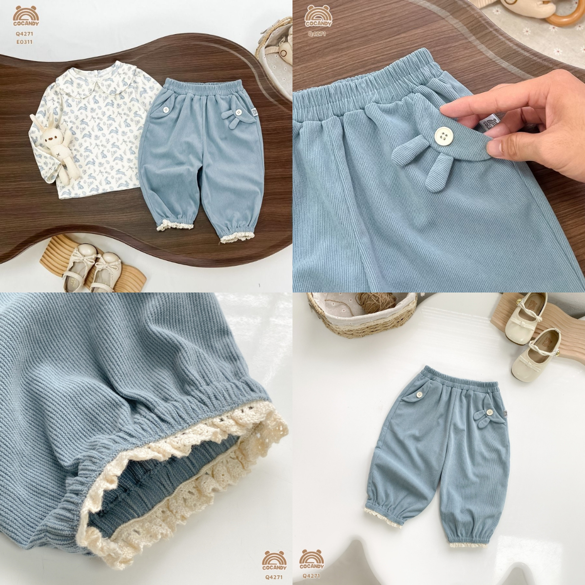 LƯU Ý: Sản phẩm chỉ gồm lẻ Quần dài nhung tăm XANH NHẠT bo gấu Q4271chưa bao gồm các sản phẩm khác phối cùng