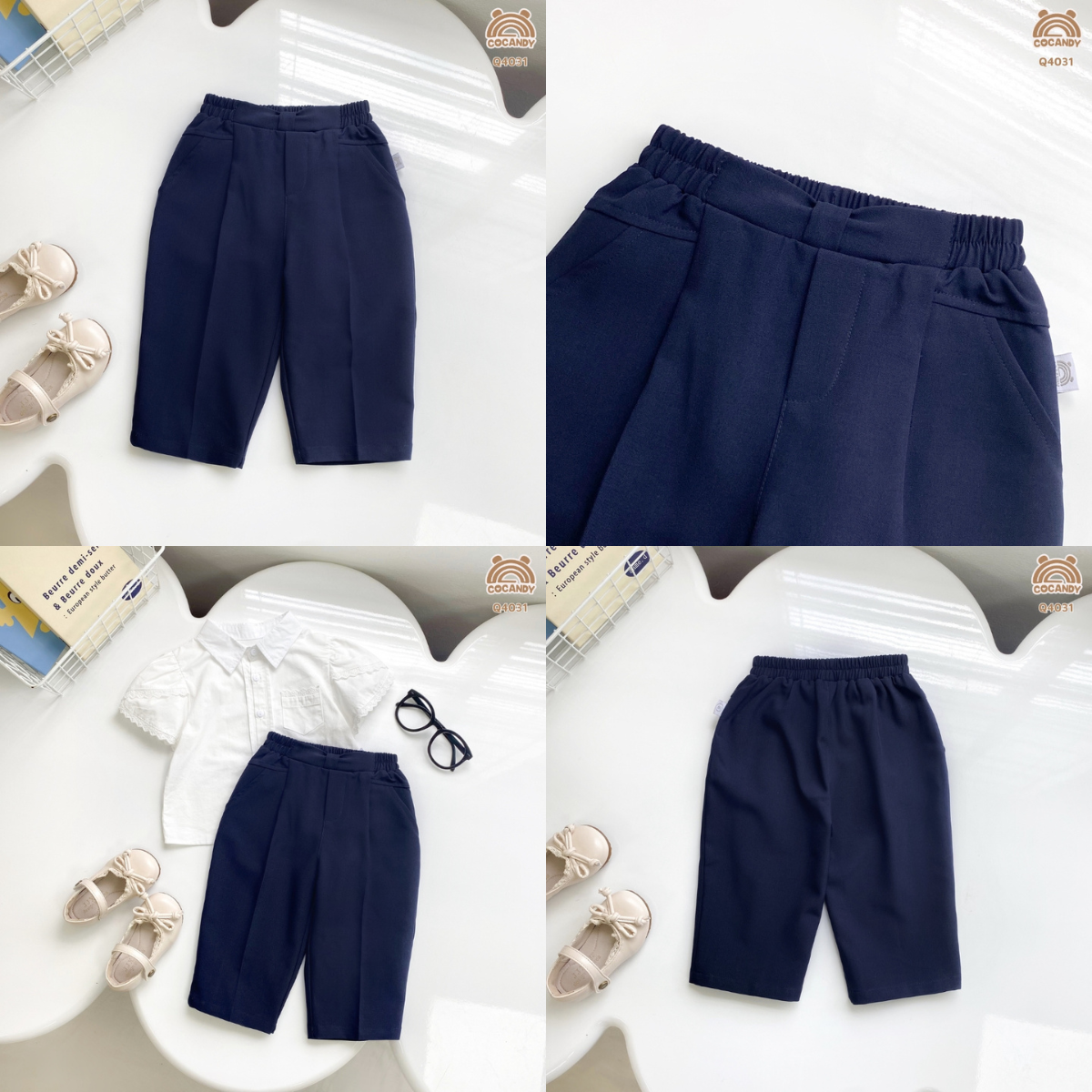 Chất liệu :- Quần dài XANH THAN phối cạp nơ Q4031 chất liệu kate mềm mại và ít nhăn. Thiết kế dáng suông gọn gàng, lưng thun thoải mái. Phù hợp cho bé mặc đi học, đi chơi hằng ngày. Màu đơn giản, dễ phối cùng nhiều kiểu áo khác nhau