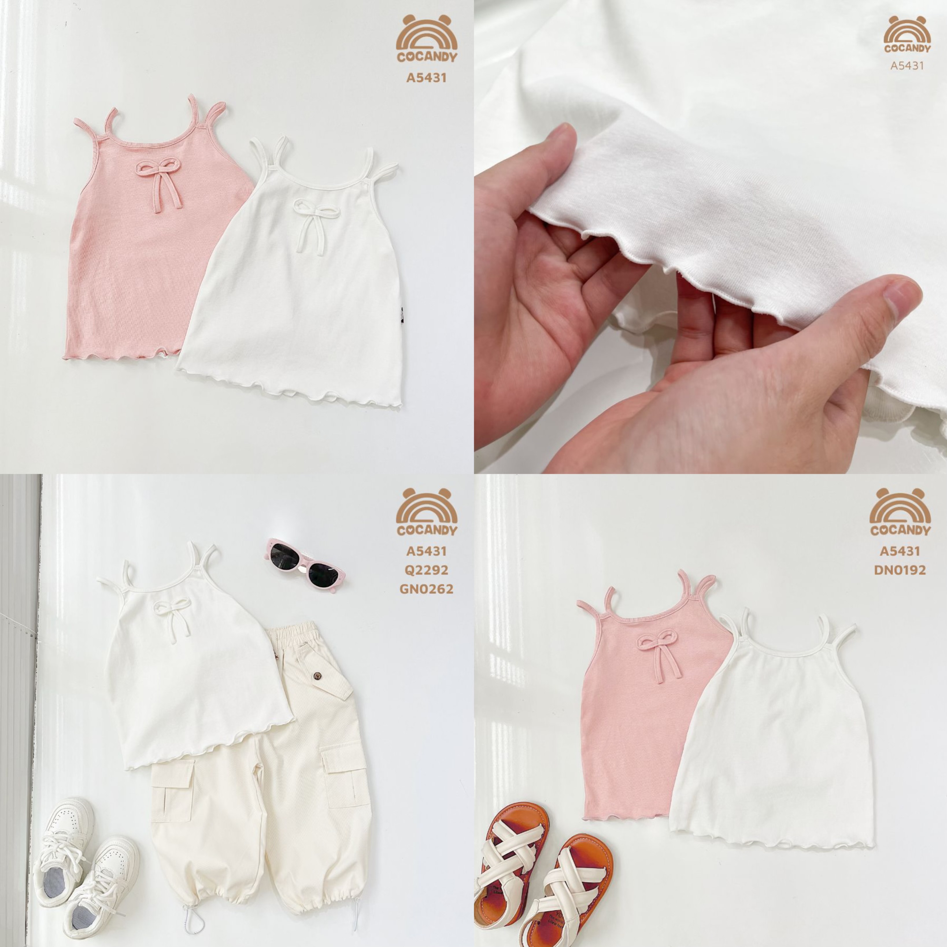 Chất liệu :Sét áo 2 dây trơn nơ ngực A5431 với chất chất liệu cotton bozip siêu mềm và SIÊU CO GIÃN. Kết cấu vải thấm hút, thoáng khí bé mặc mát và thoải mái vận động