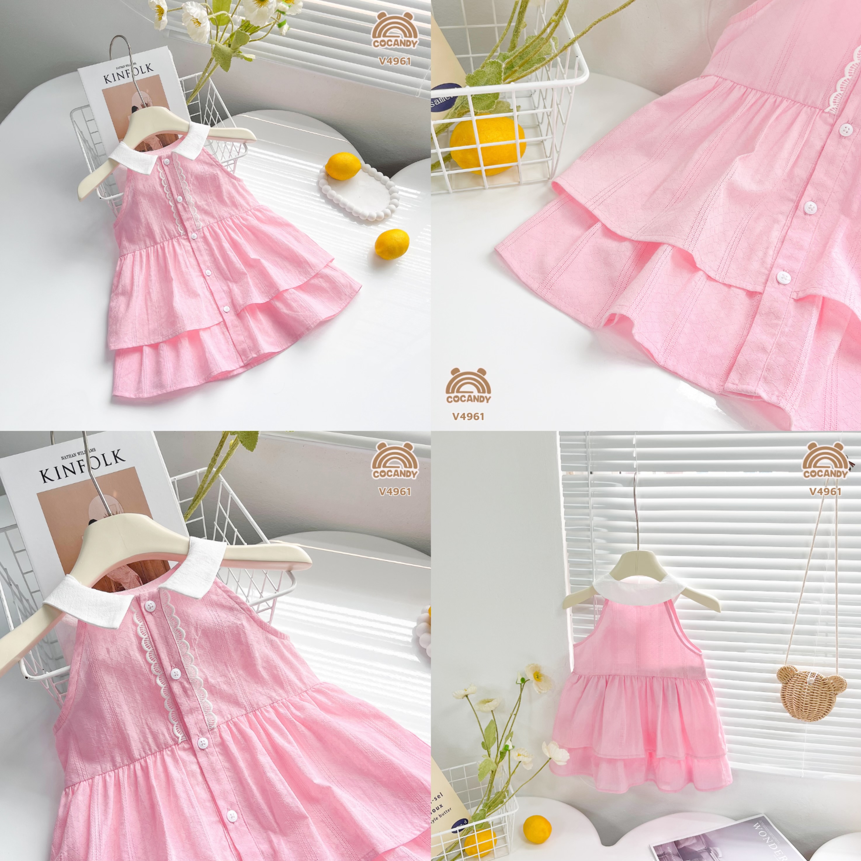Chất liệu : - Váy cộc HỒNG sát nách cổ bẻ 2 tầng V4961 chất thô boi chỉ nổi độc đáo với các lỗ thông hơi đảm báo thoáng mát và mềm mại. Váy thiết kế tầng điệu đà xinh xắn, ở phần thân mông váy bên em có may thêm lớp lót để bé diện thoải mái và tiện lợi ạ