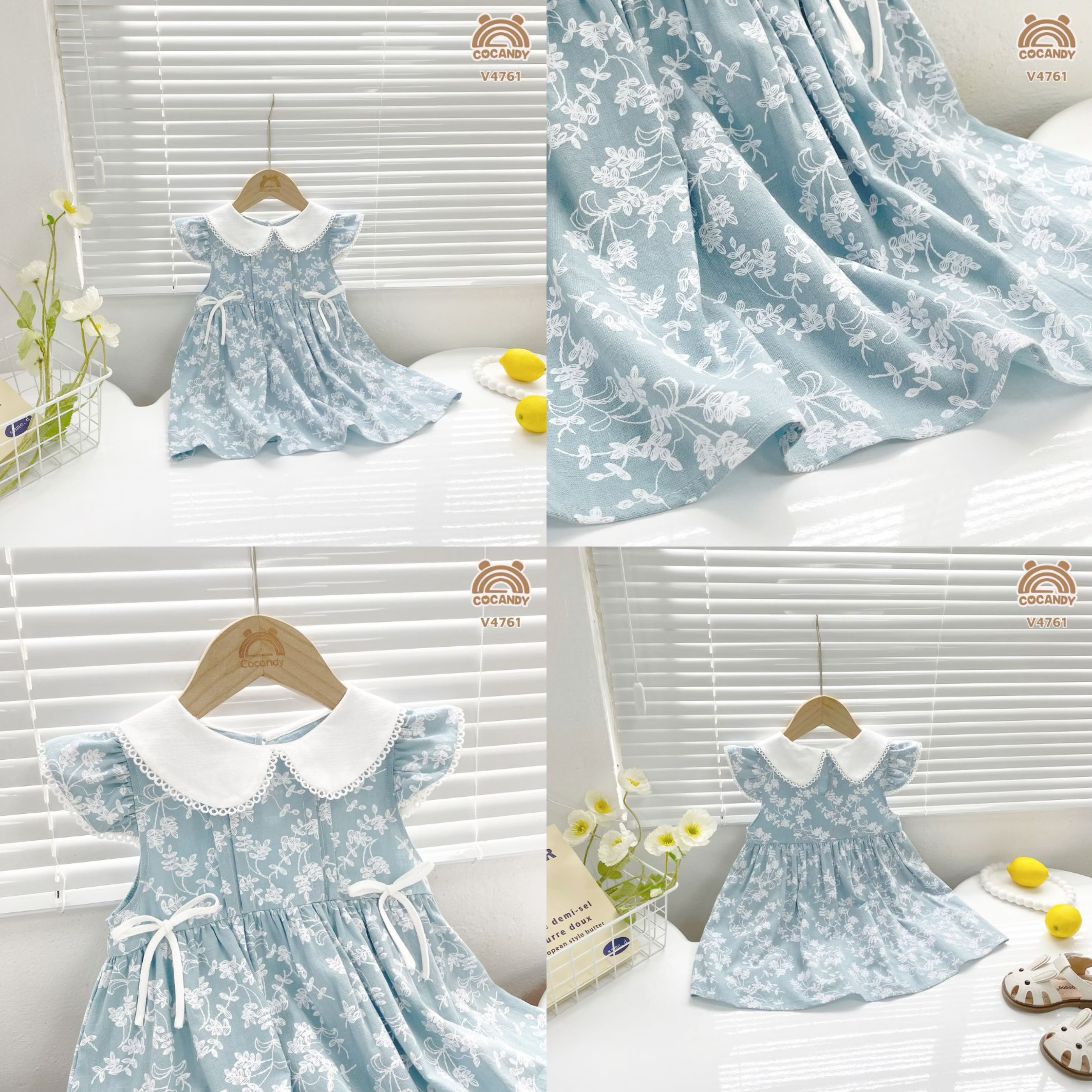 Chất liệu : - Váy hoa XANH TRẮNG cổ sen phối ren 2 nơ eo V4761 chất liệu linen mềm với hàng ngàn lỗ thoáng khi siêu nhỏ trên bề mặt, kết cấu thấm hút và an toàn cho làn da. Thiết kế phối ren tinh tế và xinh yêu
