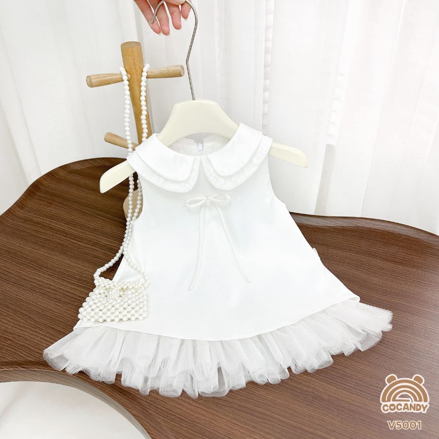 Chất liệu : - Váy TRẮNG "Lily Mist" cổ sen phối nơ ren V5001 chất tafta cao cấp giữ form, thiết kế thoải mái, cổ sen tròn nhẹ nhàng, bên trong có lớp lót mỏng kết hợp cùng lớp lưới tầng ở chân váy tạo độ bồng vừa phải mà vẫn giữ sự thanh lịch. Váy có chi tiết nơ tăng thêm điểm nhấn dễ thương